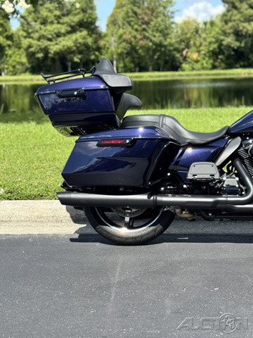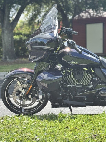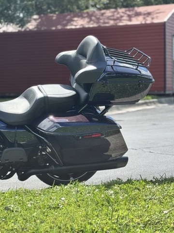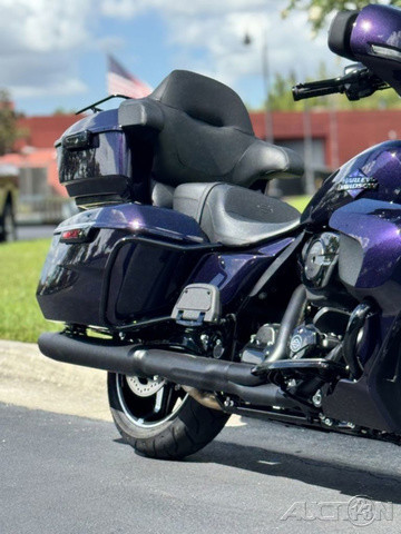 2025 Harley-Davidson® Street Glide® UltraFeatures may include:DESIGNStreet Glide style dressed up with long-mile amenities, including heated grips and a plush two-up seat to keep both you and your passenger comfortable and confident on every ride.Fairing + Tall WindshieldThe iconic Batwing fairing has been designed and sculpted using computational fluid dynamics (CFD), wind-tunnel testing, and time on the road to improve comfort and reduce buffeting. New clear windshield is four inches taller than standard Street Glide models and reduces helmet buffeting by up to 60 percent.Two-Up Comfort SeatDesigned for all-day, two-up riding, the new seat ergonomically rotates the rider’s hips forward to relieve spine pressure.StorageKing Tour-Pak® luggage carrier comes standard and has a robust passenger back pad with armrests. The hard-shell luggage carrier, fairing cubbies, and large saddlebags offer 4.9 cubic feet of combined storage—more than twice that on a standard Street Glide.PERFORMANCEMore power to cover ground in style and comfort, and strong brakes and suspension to lead the pack when the road starts to twist.Milwaukee-Eight® 117 V-Twin EngineGiving you more torque and horsepower than the Twin-Cooled 114, the Milwaukee-Eight® 117 has liquid-cooled cylinder heads and a centrally located radiator that sends air directly into the intake for quicker cooling.Rear ShocksWith three inches of travel, SHOWA® dual outboard emulsion technology shocks provide a responsive and consistent ride. Remote hydraulic preload adjustments are made quickly and easily by hand.INNOVATIONA classic silhouette boasts a host of modern tech and innovation, from comfort features to Rider Safety Enhancements that help keep you out on the road longer.12.3-Inch TFT DisplayOur most advanced display, the crystal-clear, 12.3-Inch touchscreen color TFT with Skyline™ OS lets you easily access infotainment, navigation, switch between the bike’s four ride modes, and more.Vehicle Hold ControlWhen stopped on an incline or a decline, squeeze and release the front brake lever to activate Vehicle Hold Control and keep the Street Glide Ultra from rolling.NavigationHands-free Voice Recognition System makes built-in navigation easier to use, with simple conversational commands like, “Find me a gas station.”