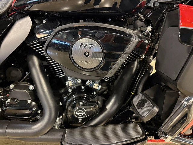 2025 Harley-Davidson® Street Glide® UltraFeatures may include:DESIGNStreet Glide style dressed up with long-mile amenities, including heated grips and a plush two-up seat to keep both you and your passenger comfortable and confident on every ride.Fairing + Tall WindshieldThe iconic Batwing fairing has been designed and sculpted using computational fluid dynamics (CFD), wind-tunnel testing, and time on the road to improve comfort and reduce buffeting. New clear windshield is four inches taller than standard Street Glide models and reduces helmet buffeting by up to 60 percent.Two-Up Comfort SeatDesigned for all-day, two-up riding, the new seat ergonomically rotates the rider’s hips forward to relieve spine pressure.StorageKing Tour-Pak® luggage carrier comes standard and has a robust passenger back pad with armrests. The hard-shell luggage carrier, fairing cubbies, and large saddlebags offer 4.9 cubic feet of combined storage—more than twice that on a standard Street Glide.PERFORMANCEMore power to cover ground in style and comfort, and strong brakes and suspension to lead the pack when the road starts to twist.Milwaukee-Eight® 117 V-Twin EngineGiving you more torque and horsepower than the Twin-Cooled 114, the Milwaukee-Eight® 117 has liquid-cooled cylinder heads and a centrally located radiator that sends air directly into the intake for quicker cooling.Rear ShocksWith three inches of travel, SHOWA® dual outboard emulsion technology shocks provide a responsive and consistent ride. Remote hydraulic preload adjustments are made quickly and easily by hand.INNOVATIONA classic silhouette boasts a host of modern tech and innovation, from comfort features to Rider Safety Enhancements that help keep you out on the road longer.12.3-Inch TFT DisplayOur most advanced display, the crystal-clear, 12.3-Inch touchscreen color TFT with Skyline™ OS lets you easily access infotainment, navigation, switch between the bike’s four ride modes, and more.Vehicle Hold ControlWhen stopped on an incline or a decline, squeeze and release the front brake lever to activate Vehicle Hold Control and keep the Street Glide Ultra from rolling.NavigationHands-free Voice Recognition System makes built-in navigation easier to use, with simple conversational commands like, “Find me a gas station.”