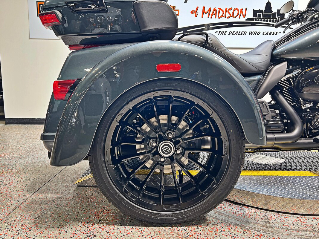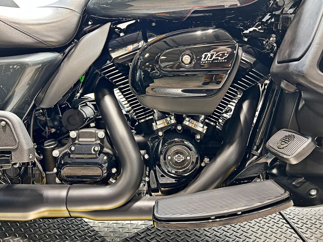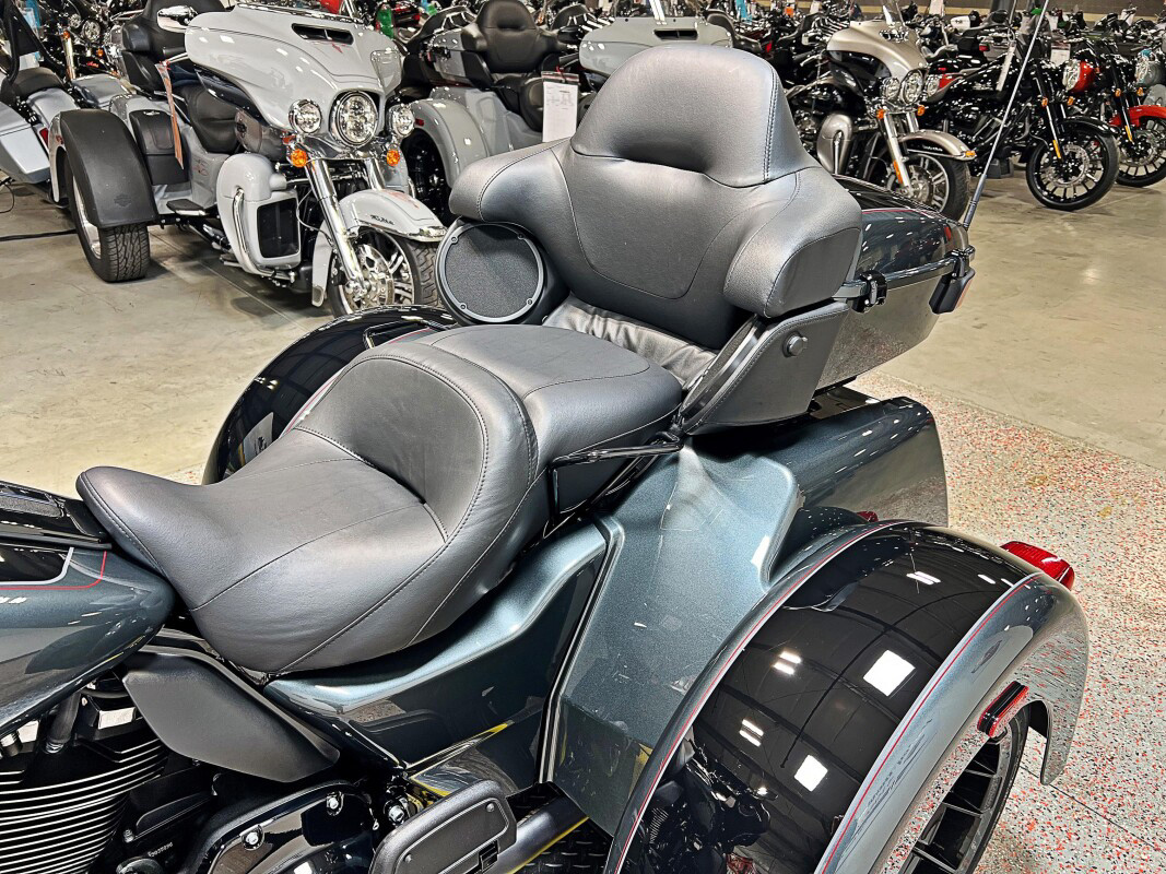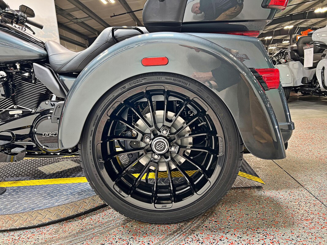 The 2025 Tri Glide Ultra delivers long-haul touring comfort with the stability of three wheels and the power of a true Harley-Davidson. Its Twin-Cooled Milwaukee-Eight 114 V-Twin engine churns out big torque with ease, making it ready for passengers, luggage, and the open road. A touchscreen display and four-speaker audio system keeps you connected, while a simple reverse drive button and 6.8 cubic feet of storage give you everyday convenience. With a commanding 19-inch front wheel and wide rear stance, this trike balances bold style with accessible ergonomics. Whether you’re tackling two-lane backroads or cross-country routes, the Tri Glide Ultra is engineered to keep you comfortable, confident, and fully in control mile after mile.