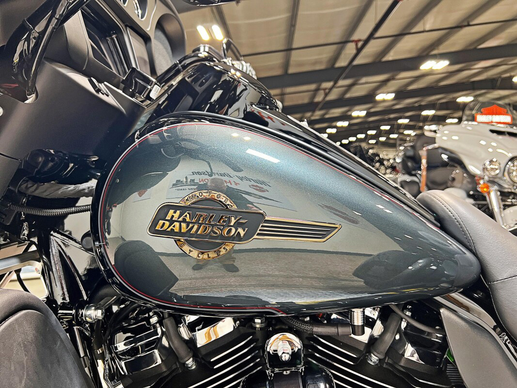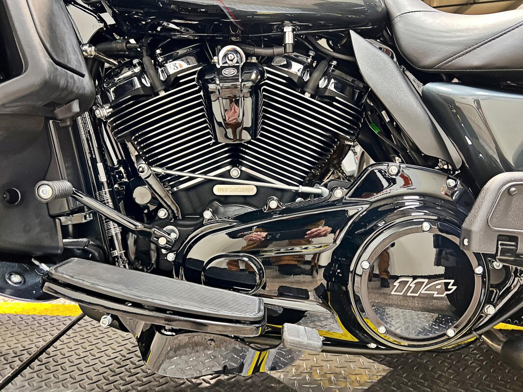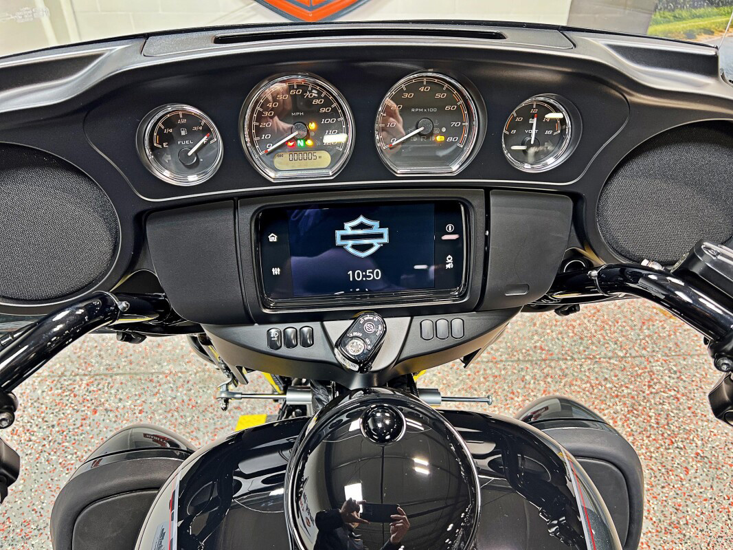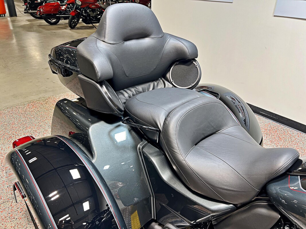 The 2025 Tri Glide Ultra delivers long-haul touring comfort with the stability of three wheels and the power of a true Harley-Davidson. Its Twin-Cooled Milwaukee-Eight 114 V-Twin engine churns out big torque with ease, making it ready for passengers, luggage, and the open road. A touchscreen display and four-speaker audio system keeps you connected, while a simple reverse drive button and 6.8 cubic feet of storage give you everyday convenience. With a commanding 19-inch front wheel and wide rear stance, this trike balances bold style with accessible ergonomics. Whether you’re tackling two-lane backroads or cross-country routes, the Tri Glide Ultra is engineered to keep you comfortable, confident, and fully in control mile after mile.