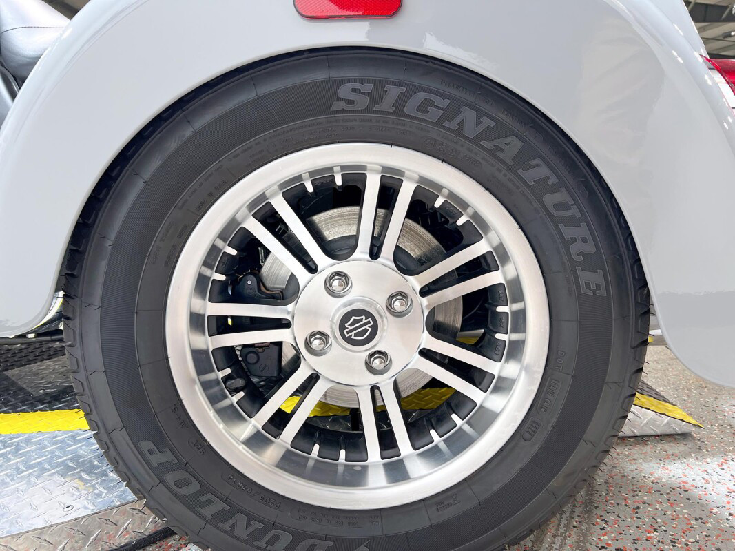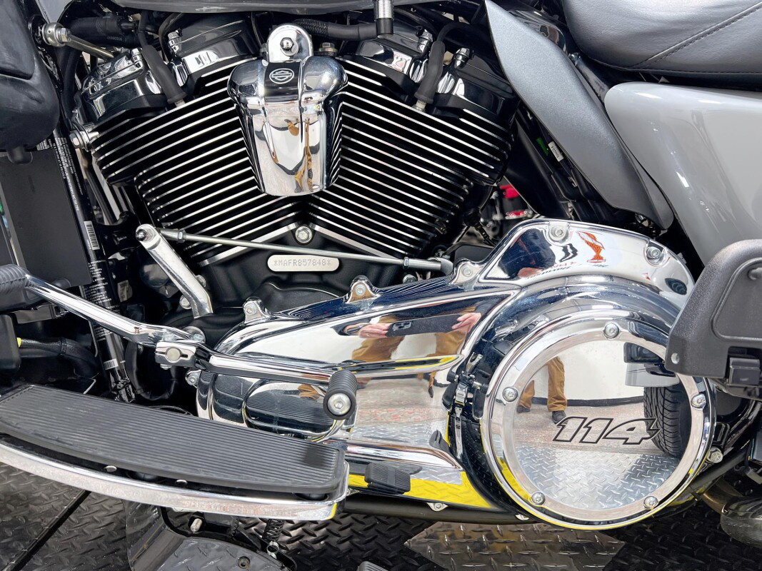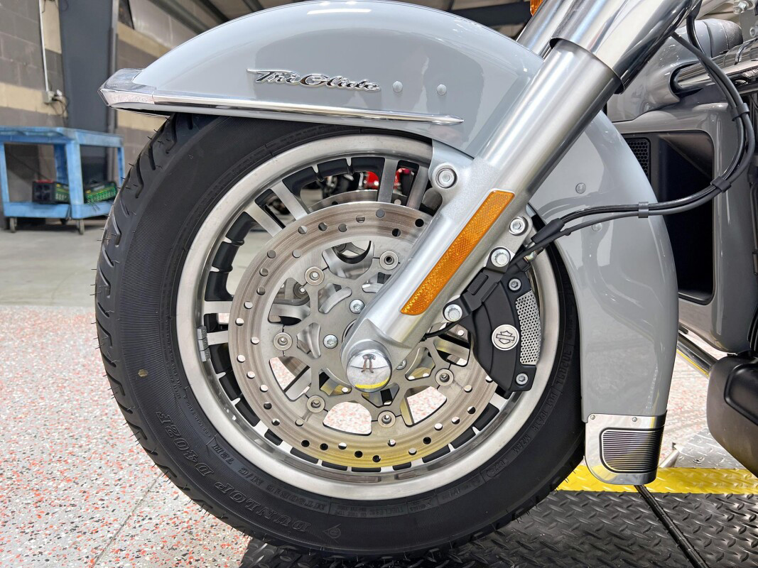 The 2025 Tri Glide Ultra delivers long-haul touring comfort with the stability of three wheels and the power of a true Harley-Davidson. Its Twin-Cooled Milwaukee-Eight 114 V-Twin engine churns out big torque with ease, making it ready for passengers, luggage, and the open road. A touchscreen display and four-speaker audio system keeps you connected, while a simple reverse drive button and 6.8 cubic feet of storage give you everyday convenience. With a commanding 19-inch front wheel and wide rear stance, this trike balances bold style with accessible ergonomics. Whether you’re tackling two-lane backroads or cross-country routes, the Tri Glide Ultra is engineered to keep you comfortable, confident, and fully in control mile after mile.