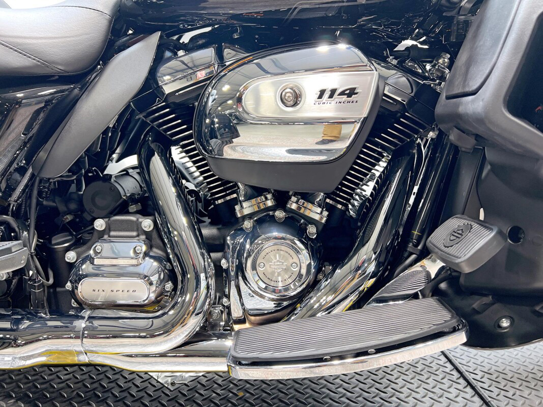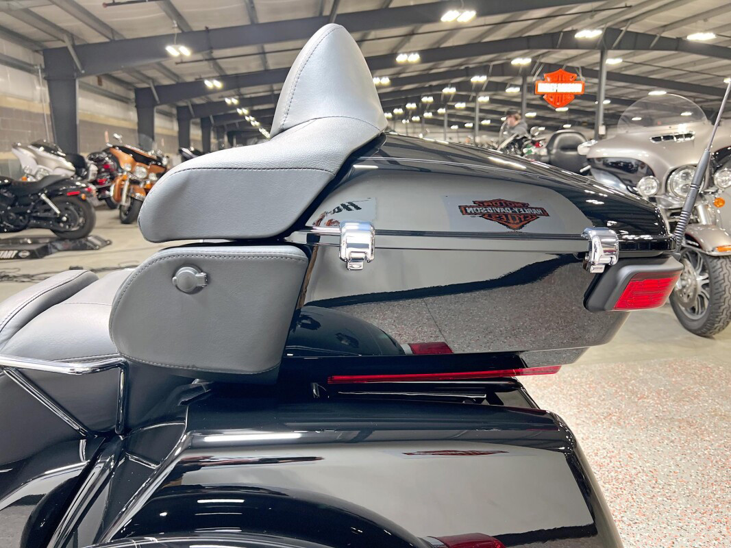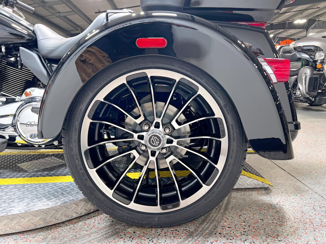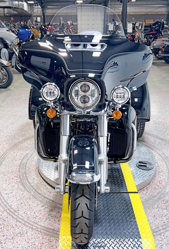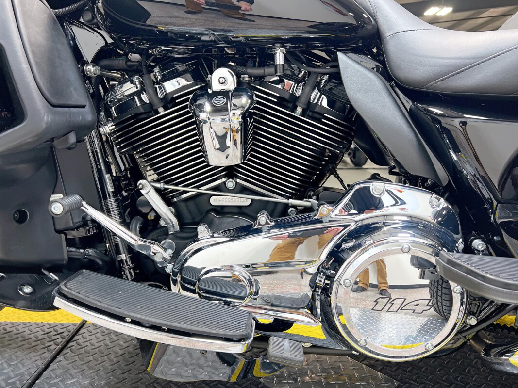 The 2025 Tri Glide Ultra delivers long-haul touring comfort with the stability of three wheels and the power of a true Harley-Davidson. Its Twin-Cooled Milwaukee-Eight 114 V-Twin engine churns out big torque with ease, making it ready for passengers, luggage, and the open road. A touchscreen display and four-speaker audio system keeps you connected, while a simple reverse drive button and 6.8 cubic feet of storage give you everyday convenience. With a commanding 19-inch front wheel and wide rear stance, this trike balances bold style with accessible ergonomics. Whether you’re tackling two-lane backroads or cross-country routes, the Tri Glide Ultra is engineered to keep you comfortable, confident, and fully in control mile after mile.