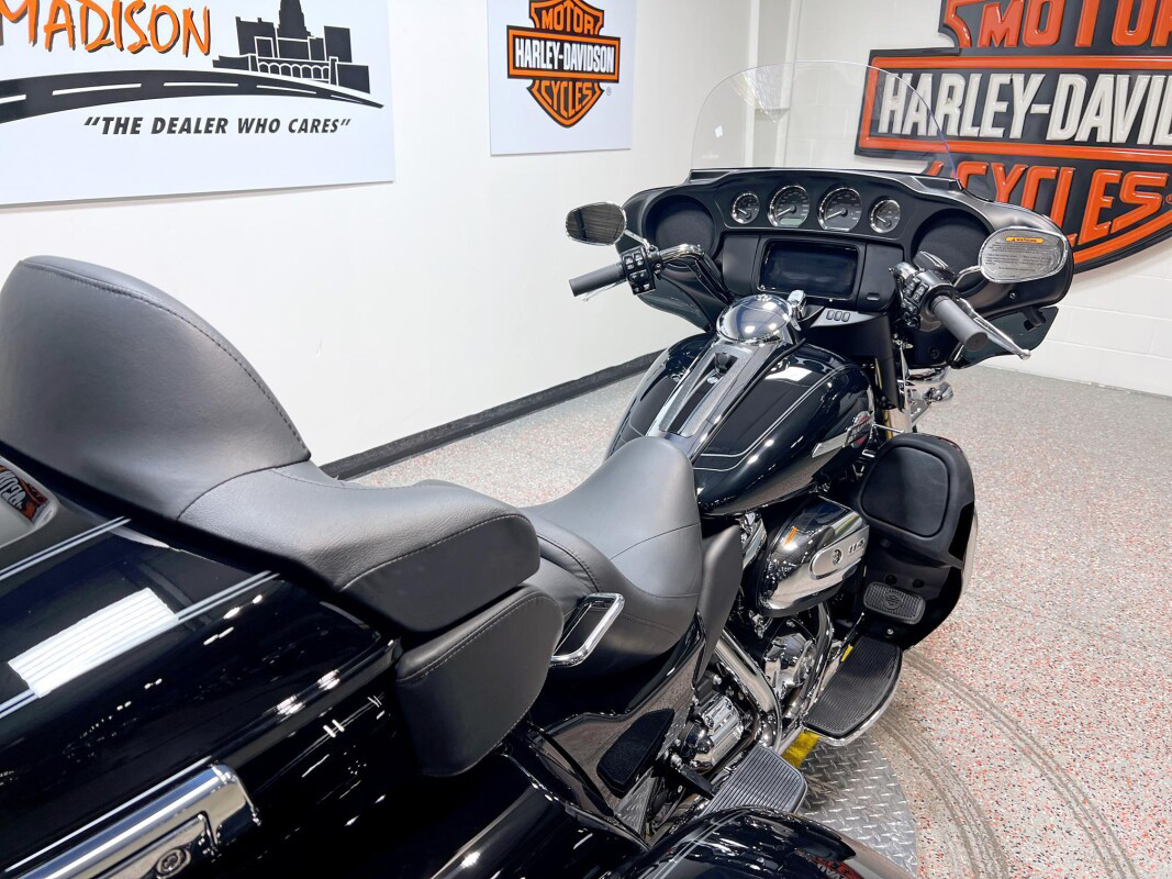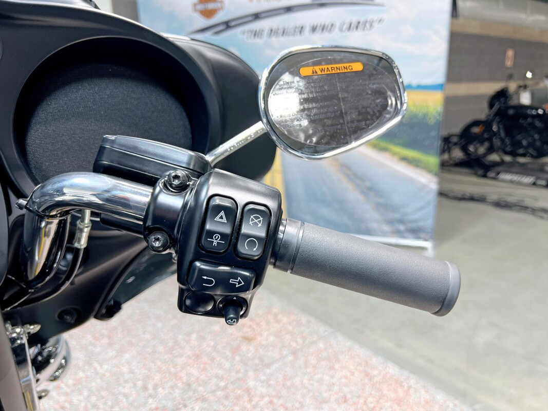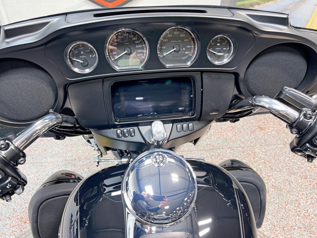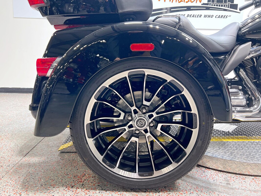 The 2025 Tri Glide Ultra delivers long-haul touring comfort with the stability of three wheels and the power of a true Harley-Davidson. Its Twin-Cooled Milwaukee-Eight 114 V-Twin engine churns out big torque with ease, making it ready for passengers, luggage, and the open road. A touchscreen display and four-speaker audio system keeps you connected, while a simple reverse drive button and 6.8 cubic feet of storage give you everyday convenience. With a commanding 19-inch front wheel and wide rear stance, this trike balances bold style with accessible ergonomics. Whether you’re tackling two-lane backroads or cross-country routes, the Tri Glide Ultra is engineered to keep you comfortable, confident, and fully in control mile after mile.
