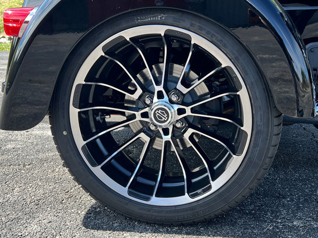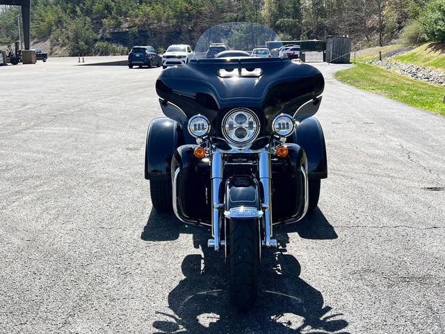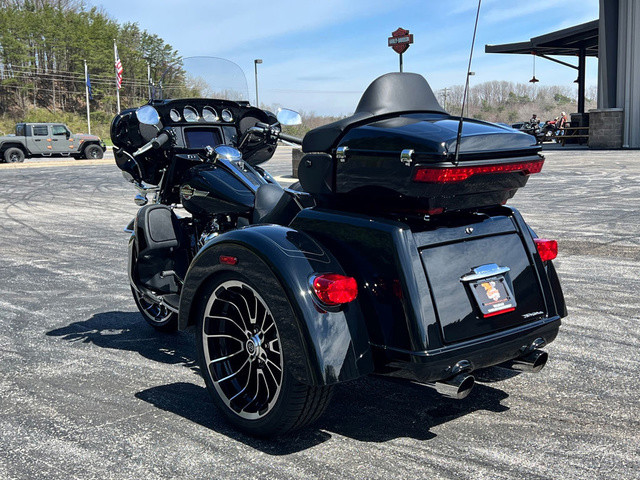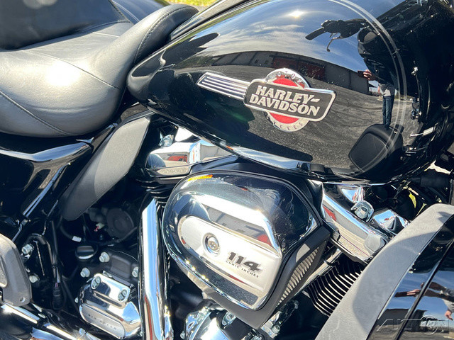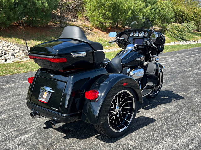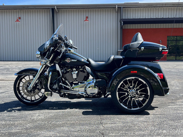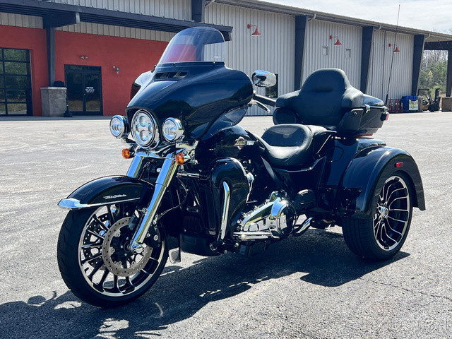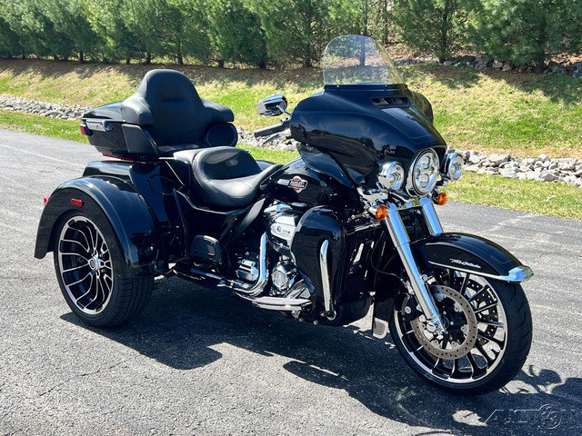 2025 Harley-Davidson® Tri Glide® UltraFeatures may include:DESIGNTri Glide Ultra has a powerful, modern stance, while black finishes on the wheels and powertrain add an aggressive edge.Blacked-Out Styling If traditional chrome isn’t your style, black finishes bring a bold and commanding presence to the large and powerful Tri Glide Ultra—from the cast wheels to the powertrain, to the Scorched Chrome tank badge.WheelsThe 19-inch front wheel and 18-inch rear elevate the stance of the Tri Glide Ultra without raising the seat height, giving the trike a commanding presence while maintaining easy accessibility.LuggageFit your weekend bags in the weatherproof, locking trunk, and use the King Tour-Pak luggage carrier for your helmets when you stop. With 6.8 cubic feet of combined storage, you have options.Fairing + Lowers Full Batwing fairing with split-stream vents and a tall windshield, as well as fairing lowers wrapped around a blacked-out engine bar, provide effective wind and weather management for both rider and passenger. Premium PaintAvailable in up to six colors, including Harley-Davidson Factory Custom Paint option Mystic Shift, which changes from a dark gunmetal to purple to blue, and finally to an almost orange hue in full sunlight.Tour-Pak Luggage Carrier Lighting, Lining, + Lock Robust and easy to access, the King Tour-Pak luggage carrier features interior lighting, a soft liner, and locks securely when you want to walk away. PERFORMANCEMilwaukee-Eight® 114 power and premium suspension keep you comfortable and confident on the road, no matter the destination.Milwaukee-Eight® 114 EngineThe Milwaukee-Eight® 114 V-twin’s 120 ft-lb of torque lets you load up the bike with confidence, never encumbered by added luggage or a passenger. Rear SuspensionSingle-knob preload adjustment allows for quick-and-easy cargo and passenger adjustment on the go.INNOVATIONA four-speaker audio system and Harley-Davidson’s Rider Safety Enhancements are controlled through a 6.5-inch touchscreen display, and an electric reverse drive makes it easy to park your trike.6.5-Inch Touchscreen Display Touchscreen display is bright and clear, displaying navigation, Bluetooth® audio control, tunable Rider Safety Enhancement features, and more.Electric ReverseNever stress about parking with an electric reverse drive. Simply push the reverse button, and the trike backs up with ease, even on hills. Rider Safety EnhancementsHarley-Davidson's Rider Safety Enhancements provide both Cornering and Straight-Line ABS, Traction Control with modes, and Electronically Linked Brakes as well as the Drag-Torque Slip Control System.AudioYour favorite riding soundtrack plays through four 25-watt speakers that support wired audio, Bluetooth® audio, or satellite radio.