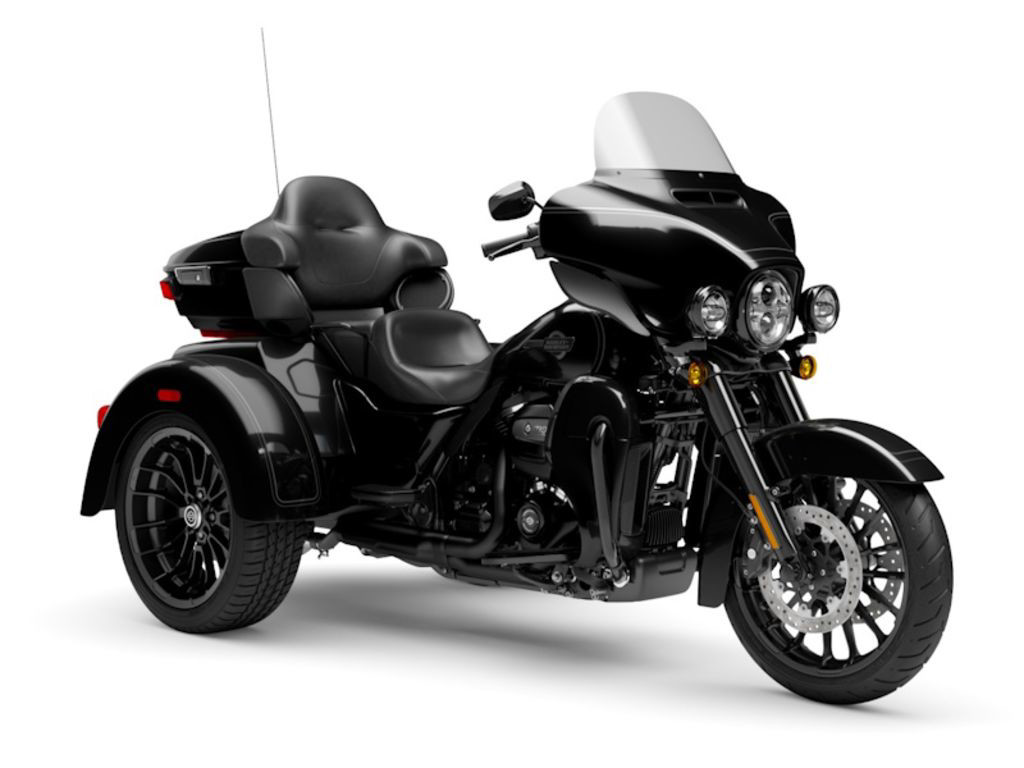 Tri Glide Ultra has a powerful, modern stance, while black finishes on the wheels and powertrain add an aggressive edge.