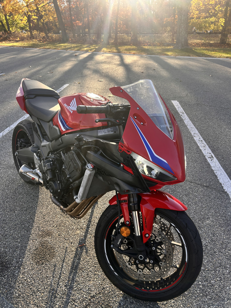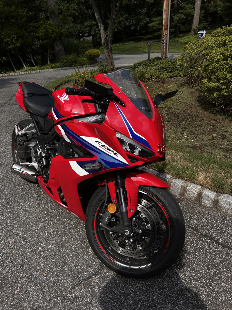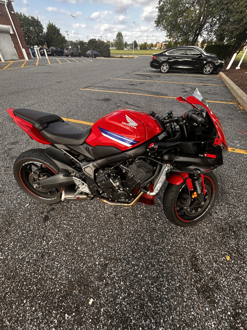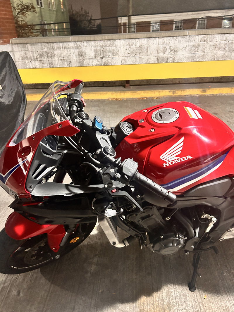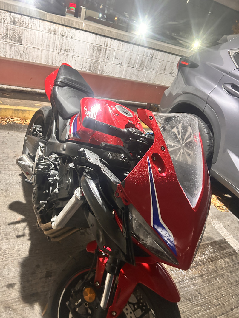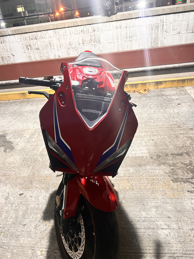 Looking to sell my little Honda. She’s in great condition ( running wise) she’s got a couple of scratches on the e clutch actuator cover (from dropping it). So far I’ve done 2 oil changes ( at around 1,500k miles or so) and I have had the clutch replaced ( burnt it over messing around with some buddies) I have an aftermarket exhaust system (full thing) from dominator, I have also tuned this little Honda. Funny story in which I won’t get into detail with but I was on the highway with some buddies messing around and the fairings flew off ( I forgot to tighten the screws lol). The bike has been amazing and fun to ride with, it’s been a great way for me and my buddies to fck around with, rn it’s not very pretty but I can absolutely make it nice again ( let me know and I will make her pretty again) I do want to get something casual like a V rod ( that’s why I’m selling it). If you have more questions about feel free.