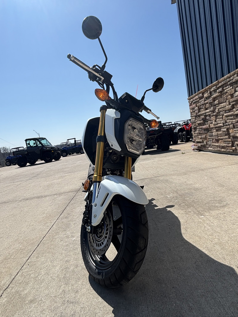 Erase what you know about size and power because the 2025 Honda Grom has once again rewritten the rules. It's not just a great ride; it's a blast in a tiny package. Updated with restyled sleek bodywork for this year, the original miniMOTO machine offers three ways to smile: the standard Grom in Candy Blue, Pearl White, and Cherry Red; the Grom ABS in Pearl White with stellar front-wheel anti-lock brakes; and the Grom SP in stealthy Matte Black Metallic with stand-out graphics. Ready for customization with easy-swap body panels, this fun sport motorcycle is creativity on wheels. Get ready because joy rides just got even more joyous.