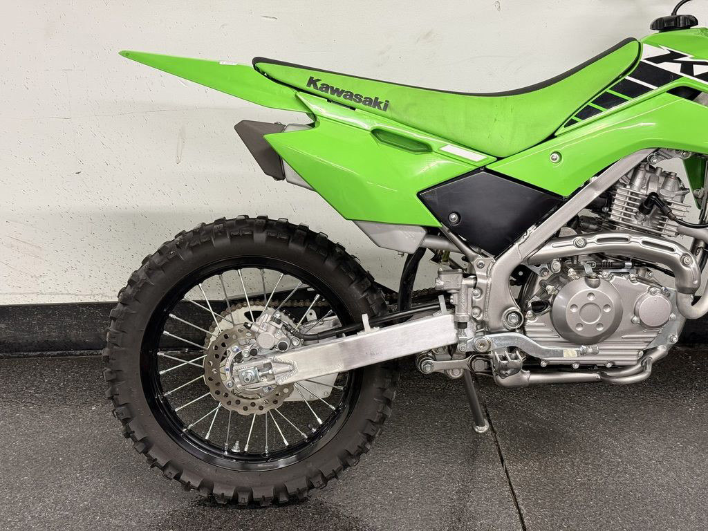 Featuring confident handling, KLX®140R motorcycles are the ideal entry into off-road riding. The easy-to-ride KLX140R lineup offers a 144cc engine, plush suspension and push button electric start, making for great trailblazers.
