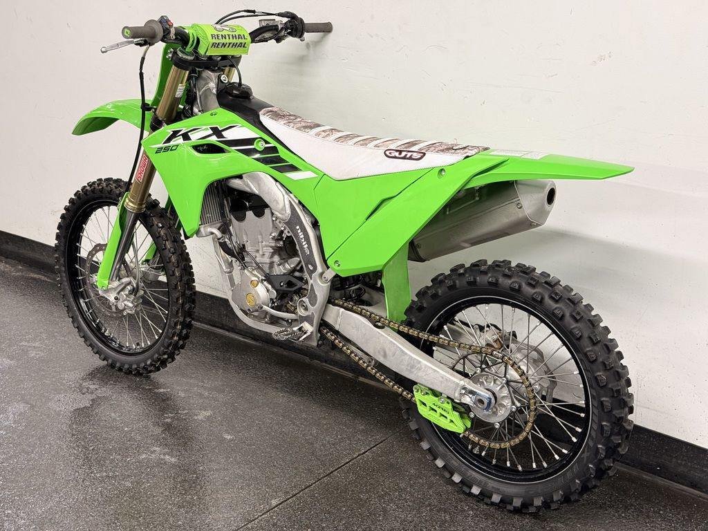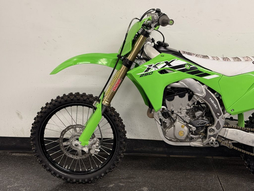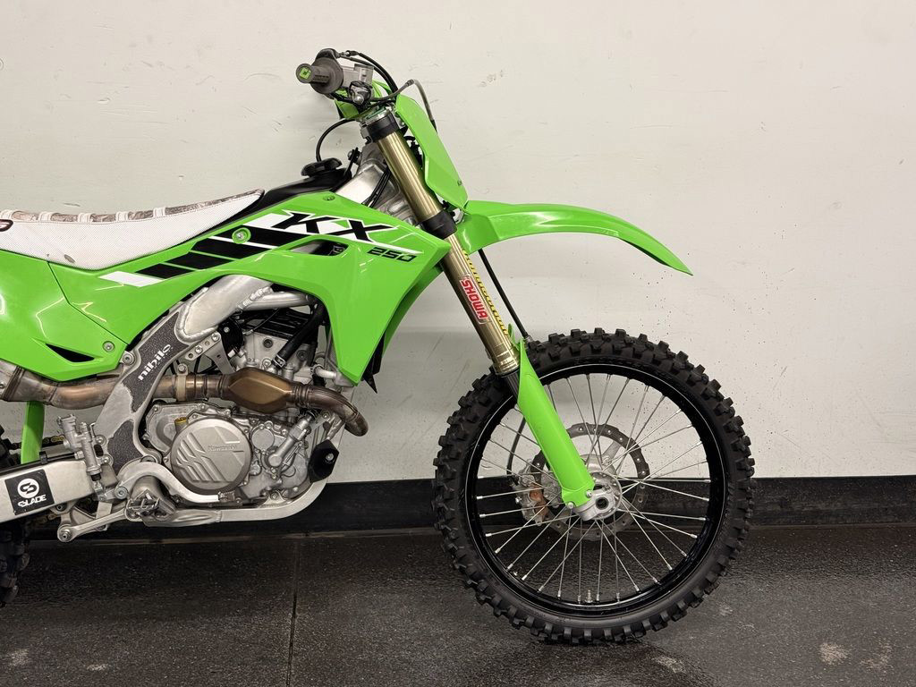 Race to victory on the bike built for winning. The all-new KX™250 motorcycle is the most competitive racing package yet, with an improved chassis, an updated engine, and all-new Power Mode Selection and Kawasaki TRaction Control (KTRC). Plus, cutting-edge technology like ERGO-FIT® components and RIDEOLOGY THE APP KX™ offer maximum adjustability, so you can find your unique winning style. Be the fastest in the pack. Be the next champion on the KX250.