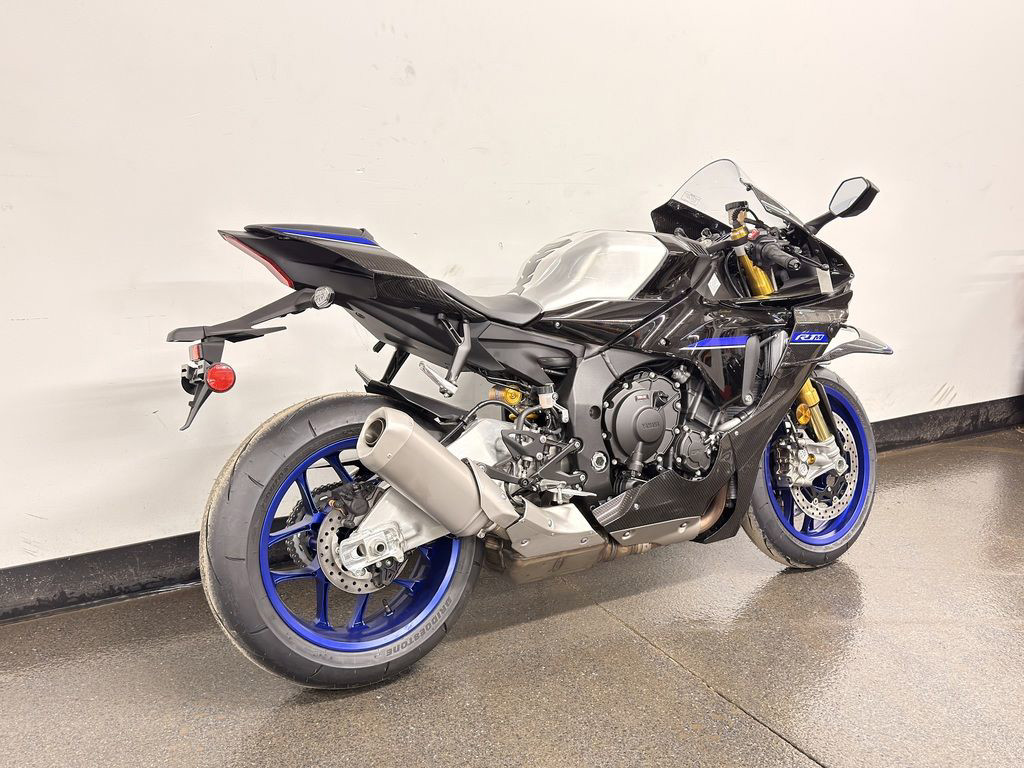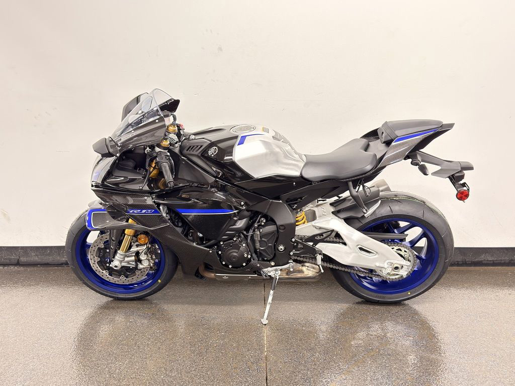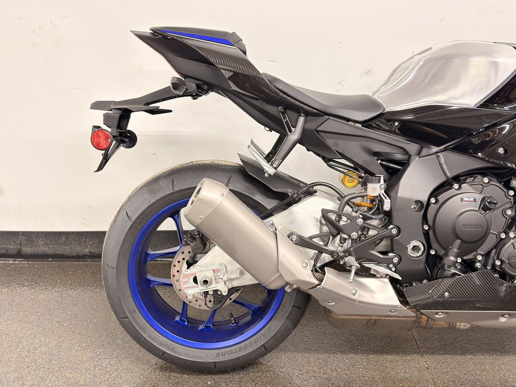 The YZF-R1 features beautifully integrated bodywork and sleek, stylish lines which create an unmistakably aggressive, aerodynamic profile. R1M riders are treated to even higher levels of fit and finish thanks to full carbon-fiber bodywork, including a carbon windscreen fairing, side fairings, front fender and tail section, matched to a polished aluminum swingarm and topped with a unique serial-numbered YZF-R1M badge on top of the airbox cover.