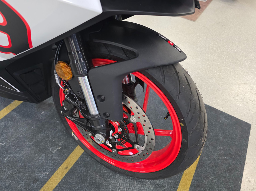 The Aprilia RS 457 speaks the language of riders who aren’t afraid to demand more and are ready to try a fully faired while looking for an authentic sports experience. In other words, it offers the best power-to-weight ratio. Sporting the hallmark RS family grunt and style, it makes a statement with its advanced technology and a chassis structure inherited from Aprilia’s supersport bikes. The RS 457 is an unadulterated invitation to take the plunge into the fascinating world of racing.