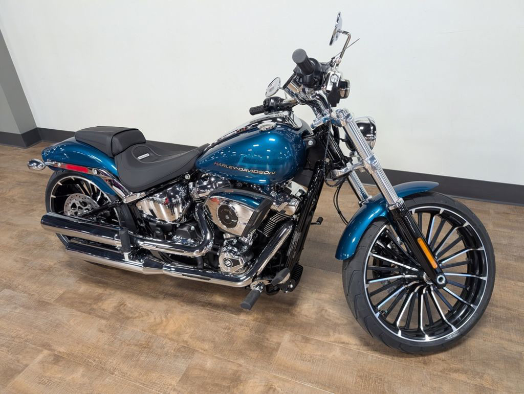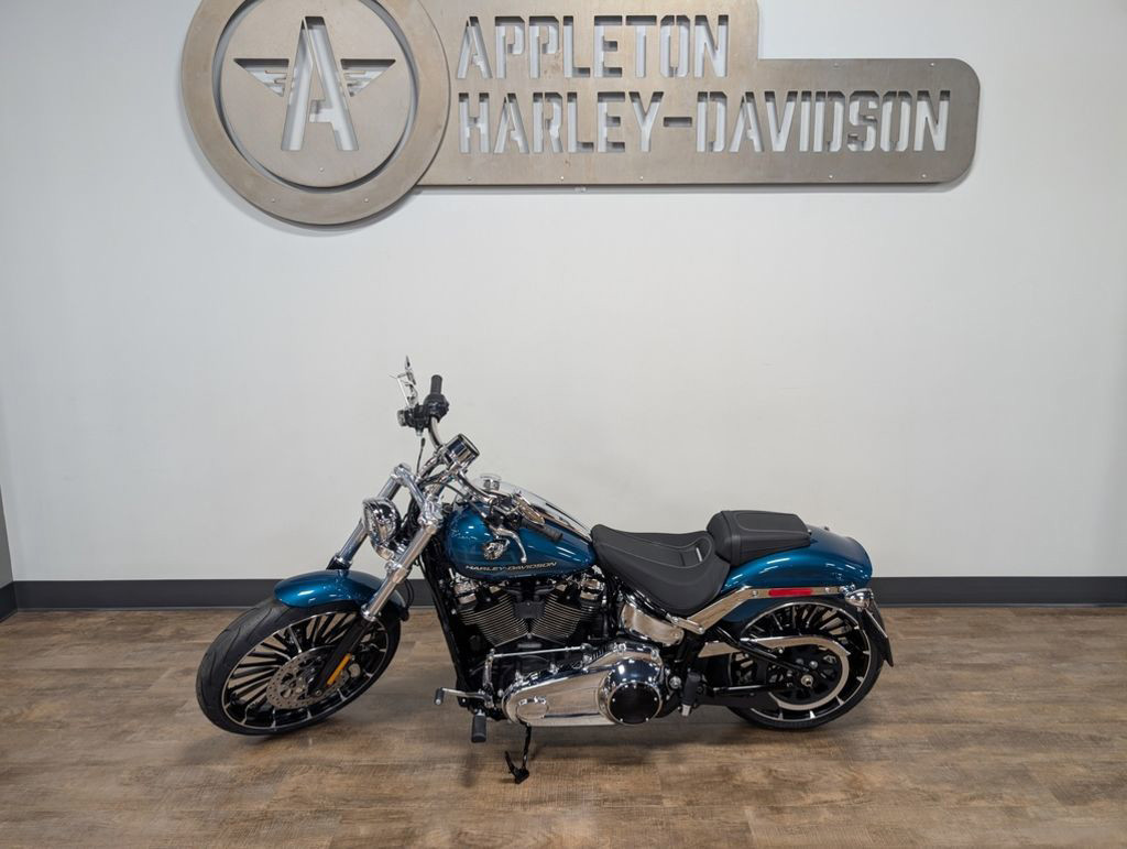 That raked-out front end is a defining part of the Breakout® silhouette and a nod to its custom heritage. It’s stretched and ready to stand apart from the factory.