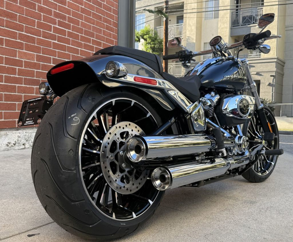 That raked-out front end is a defining part of the Breakout® silhouette and a nod to its custom heritage. It’s stretched and ready to stand apart from the factory.
