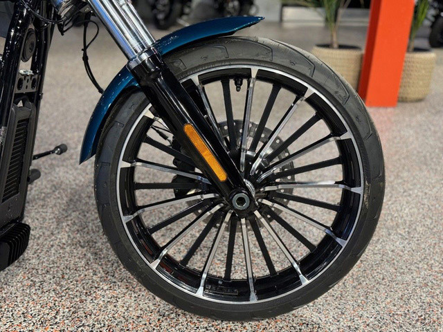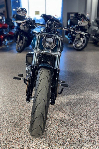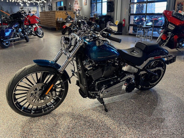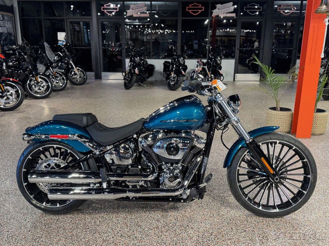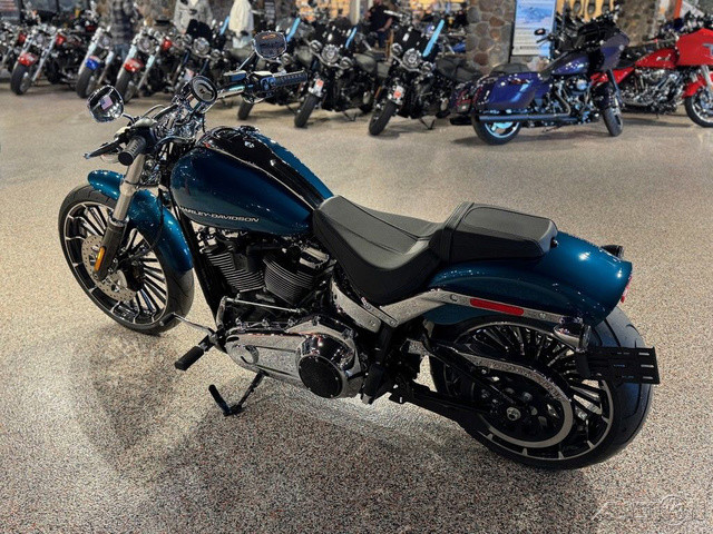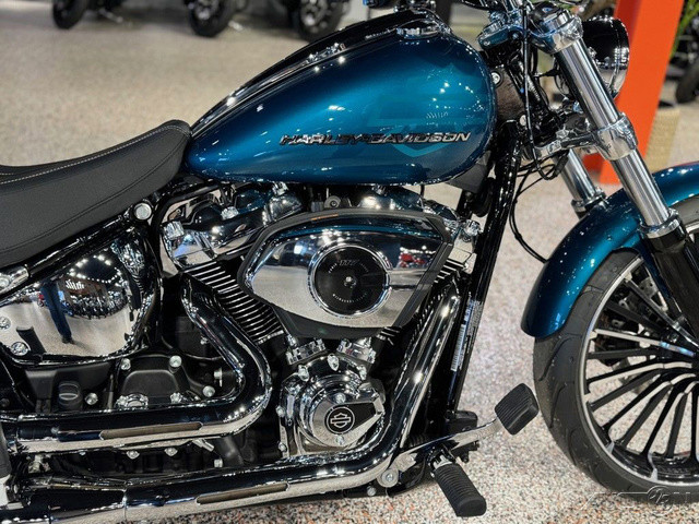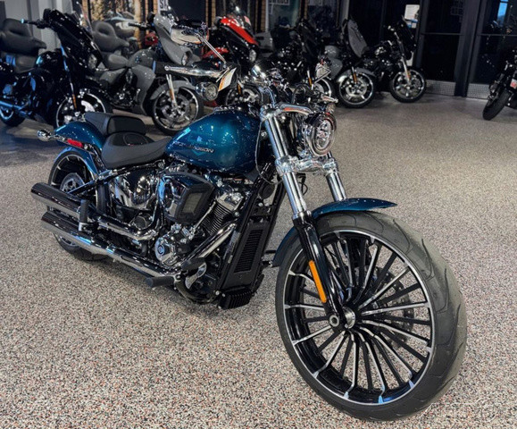 2026 Harley-Davidson® Breakout®Why Blend in When You Can Break Out?With 34 degrees of rake in the neck, a bobtail fender, and a 240mm rear tire, the 2026 Breakout feels like a factory-built street sweeper. But don't get lost in the long-and-low chopper lore. This bike also offers USB-C charging, Rider Safety Enhancements standard, a monster Milwaukee-Eight® 117 Custom, two new paint options, and much more.Features may include:Loud In All the Right WaysWith a long 34 degrees of rake, a wide 240mm rear, and a tall 21” (533 mm) up front, the 2026 Breakout accentuates its chopper lines with some modern edge. A bobtail fender keeps it lean, while LED lighting brings the view up to date.5.75” (146 mm) LED Headlamp + LED Turn SignalsBright, clean, and impossible to ignore. A 5.75” (146 mm) LED headlamp lights your line, while matching LED turn signals keep your intentions clear from every angle.Boldly Profiled 240mm Rear TireA massive 240mm rear tire plants the Breakout’s stance and delivers confidence that feels as solid as it looks.34 Degrees of Pure Chopper StanceThat raked-out front end is a defining part of the Breakout® silhouette and a nod to its custom heritage. It’s stretched and ready to stand apart from the factory.Paint + Graphics Worthy of a LegendThe 2026 Breakout® turns heads before the motor even fires, thanks to two new factory finishes: Blood Orange and Teal Thunder. They join Vivid Black, Dark Billiard Gray, and Iron Horse Metallic, each one bold enough to wear the Breakout® name.Where Show Meets GoChrome won’t get you home, but the Milwaukee-Eight® 117 Custom on the 2026 Breakout definitely will, thanks to its Touring Intake and new performance-tuned 2-into-2 exhaust.