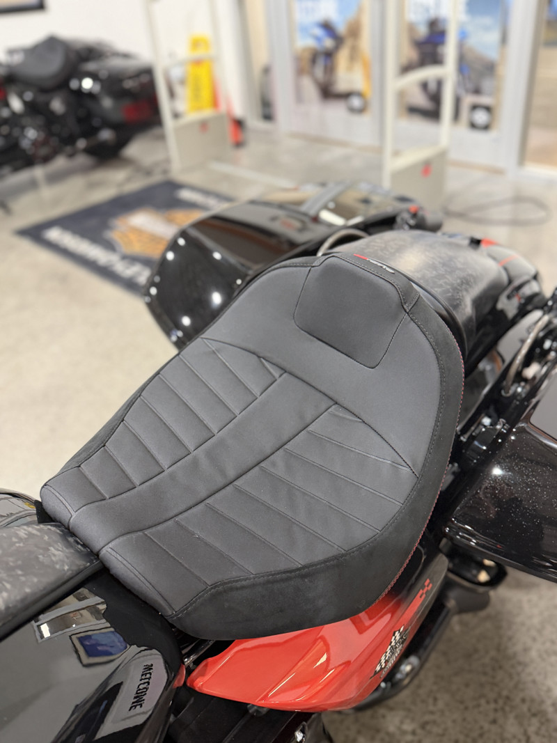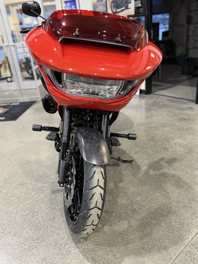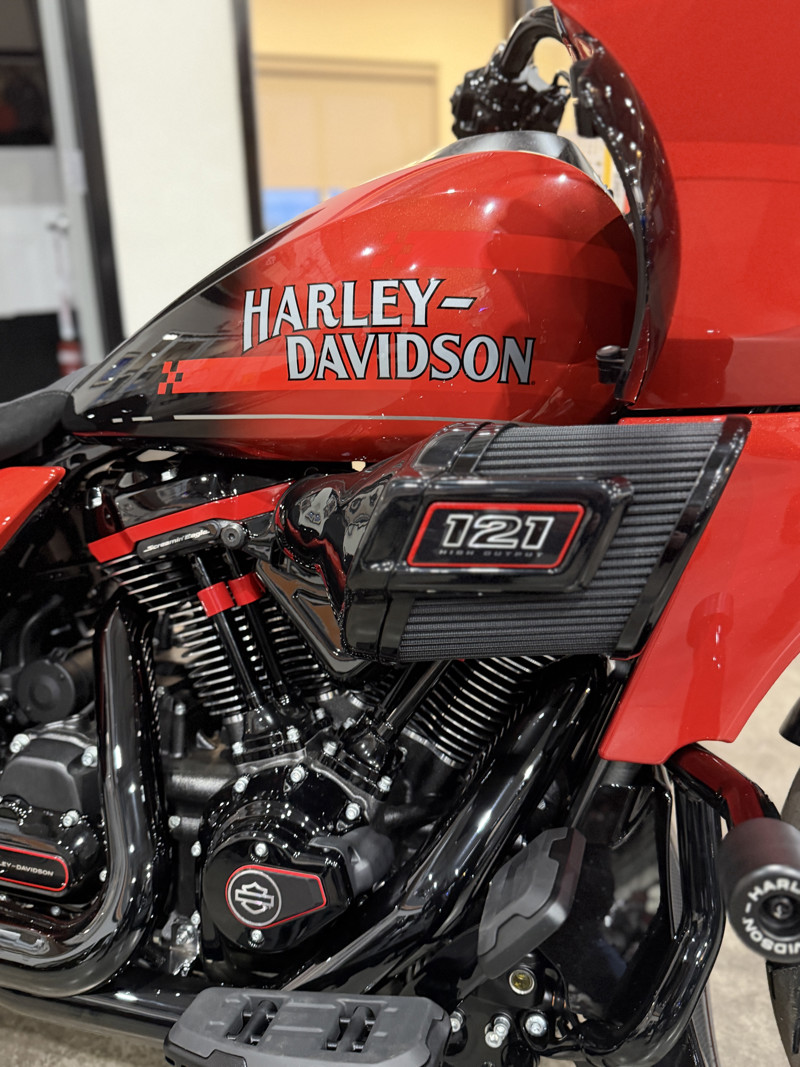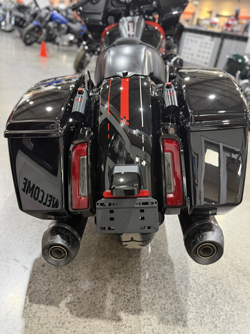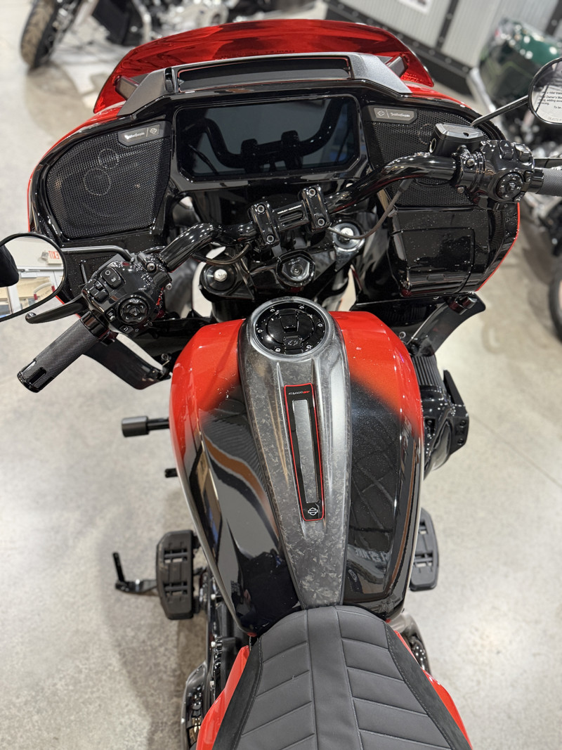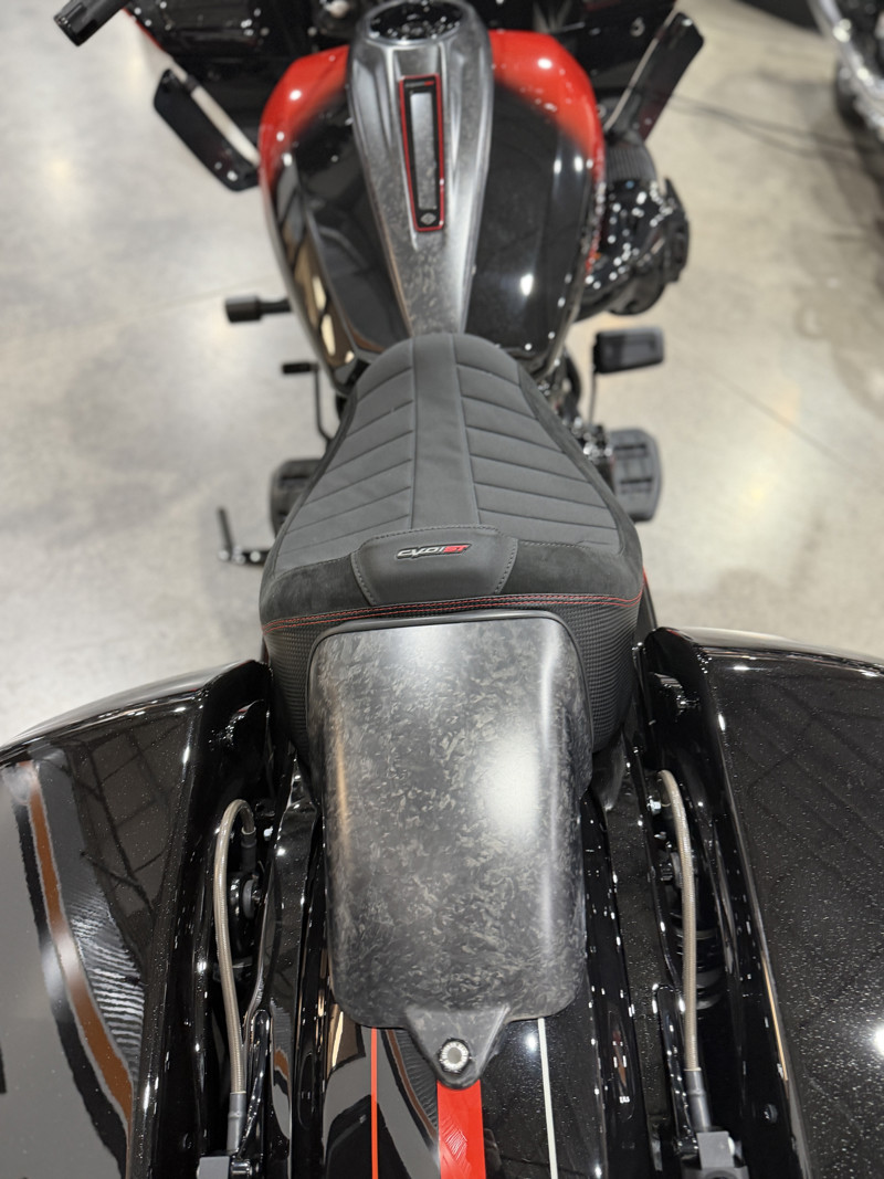 The 2026 CVO Road Glide ST is Harley-Davidson’s race-inspired bagger at its most ruthless. Its Milwaukee-Eight® 121 High Output motor delivers unbelievable power and performance, fed by a Heavy Breather intake and finished with titanium-capped mufflers. Forged carbon fiber details, tall risers with a factory moto-bar setup, remote-reservoir suspension, and specialized track modes give it the look and feel of a purpose-built weapon engineered to outpace everything around you.