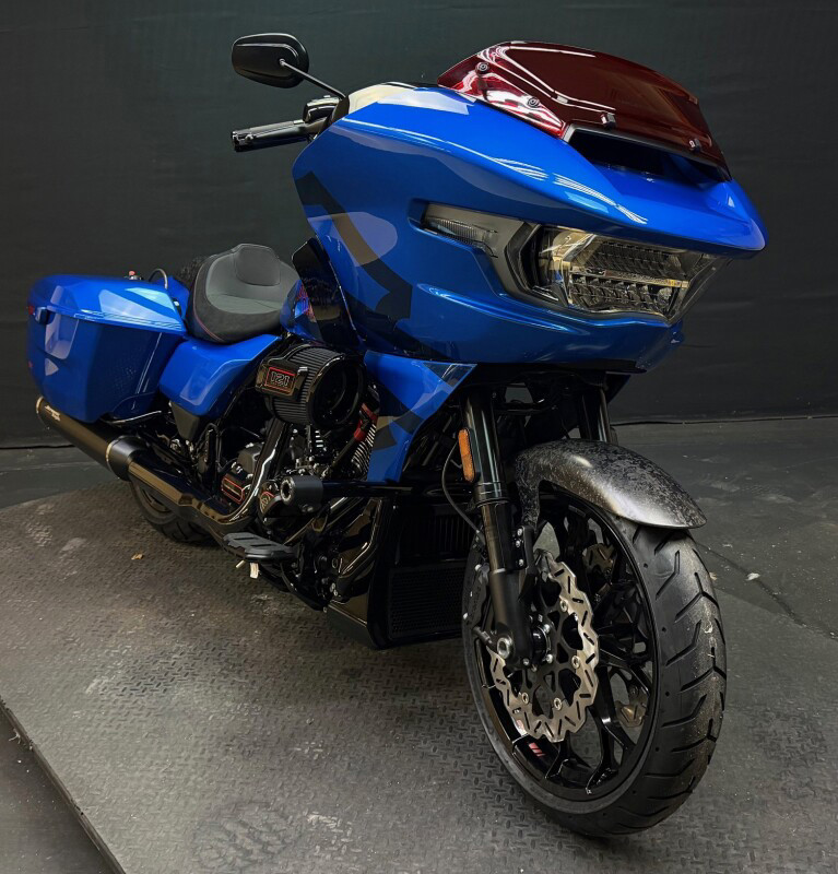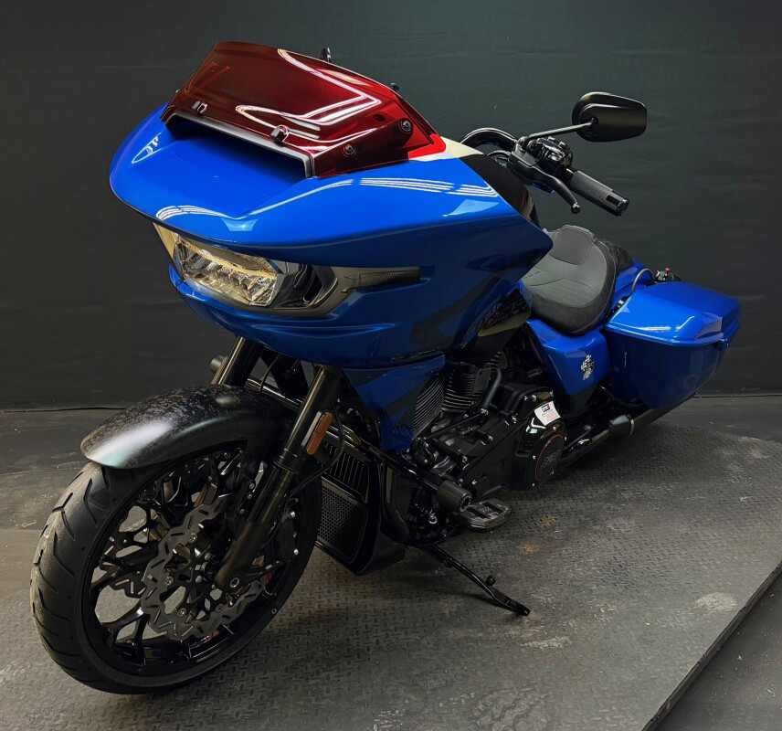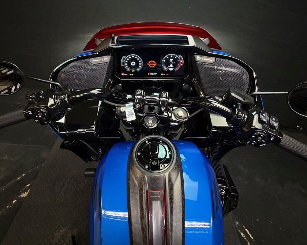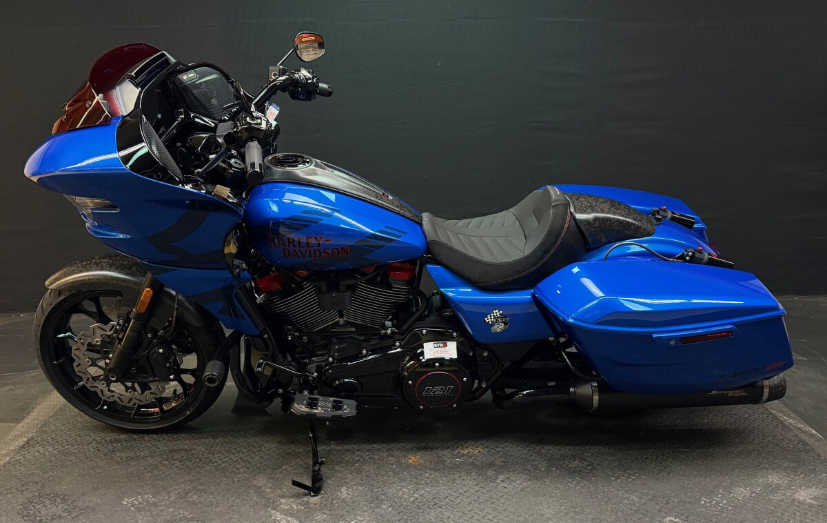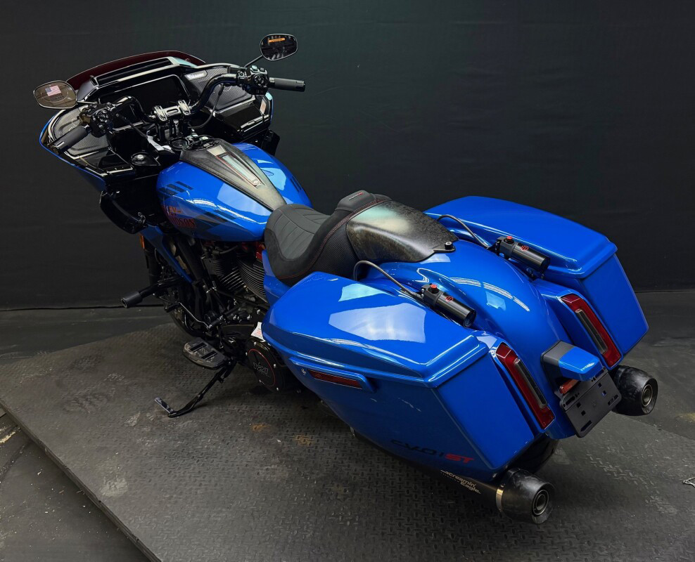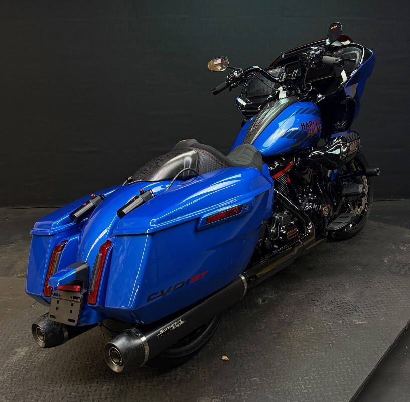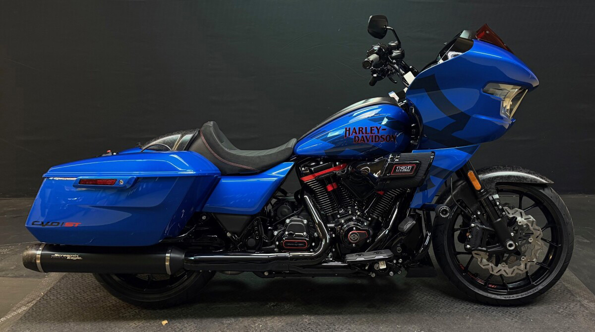 The 2026 CVO Road Glide ST is Harley-Davidson’s race-inspired bagger at its most ruthless. Its Milwaukee-Eight 121 High Output motor delivers unbelievable power and performance, fed by a Heavy Breather intake and finished with titanium-capped mufflers. Forged carbon fibre details, tall risers with a factory moto-bar setup, remote-reservoir suspension, and specialised track modes give it the look and feel of a purpose-built weapon engineered to outpace everything around you.