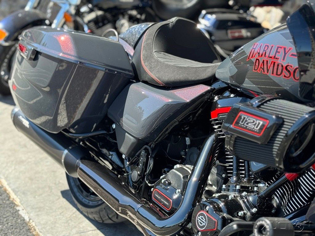 2026 Harley-Davidson® CVO™ Road Glide® STBorn for Life in the Fast Lane.The 2026 CVO Road Glide ST is Harley-Davidson’s race-inspired bagger at its most ruthless. Its Milwaukee-Eight® 121 High Output motor delivers unbelievable power and performance, fed by a Heavy Breather intake and finished with titanium-capped mufflers. Forged carbon fiber details, tall risers with a factory moto-bar setup, remote-reservoir suspension, and specialized track modes give it the look and feel of a purpose-built weapon engineered to outpace everything around you.Features may include:Forged Carbon DetailsThe front fender, console, and rear seat cowl are crafted from forged carbon fiber — an advanced material that blends strength with weight savings. The result is a finish that looks as fast as it feels, echoing the design language of modern race machines.Race-Ready CockpitA moto-style handlebar with six-inch risers sits taller for a more commanding, race-inspired riding position that makes riders feel snugged up straight from the Factory. Paired with Switchback Collection mini-boards and grips, it forms an aggressive rider triangle built for precision. Gloss Black Seven-Spoke wheels minimize mass for sharper response through every corner.Citrus Heat Re-Entry, Inferno Gray + Electric Coast ColorwaysAvailable in three exclusive colorways — Citrus Heat Re-Entry, Inferno Gray, and Electric Coast — each one amplifies the CVO Road Glide ST’s race-inspired attitude. Citrus Heat Re-Entry, available only on this model, features a bold Screamin’ Eagle graphic across the fairing and tank, while Inferno Gray and Electric Coast showcase Harley-Davidson script and an oversized Bar & Shield. This bike looks every bit as fierce as it sounds.Sharknose Fairing with Red-Tint WindshieldThe signature Sharknose fairing is both functional and fun, delivering exceptional aerodynamic performance and a menacing stance that defines the CVO Road Glide ST. A red-tinted windshield ties into Performance Red accents for a unified, track-inspired look that’ll make you feel like you’re the King of the Baggers. See what we did there?Switchback Collection Billet FloorboardsCompact billet aluminum floorboard from the Switchback Collection cut weight without cutting look and feel. Their anodized black finish and chunky rubber tops offer sure footing and a raw, functional aesthetic made for aggressive riding anywhere you go.