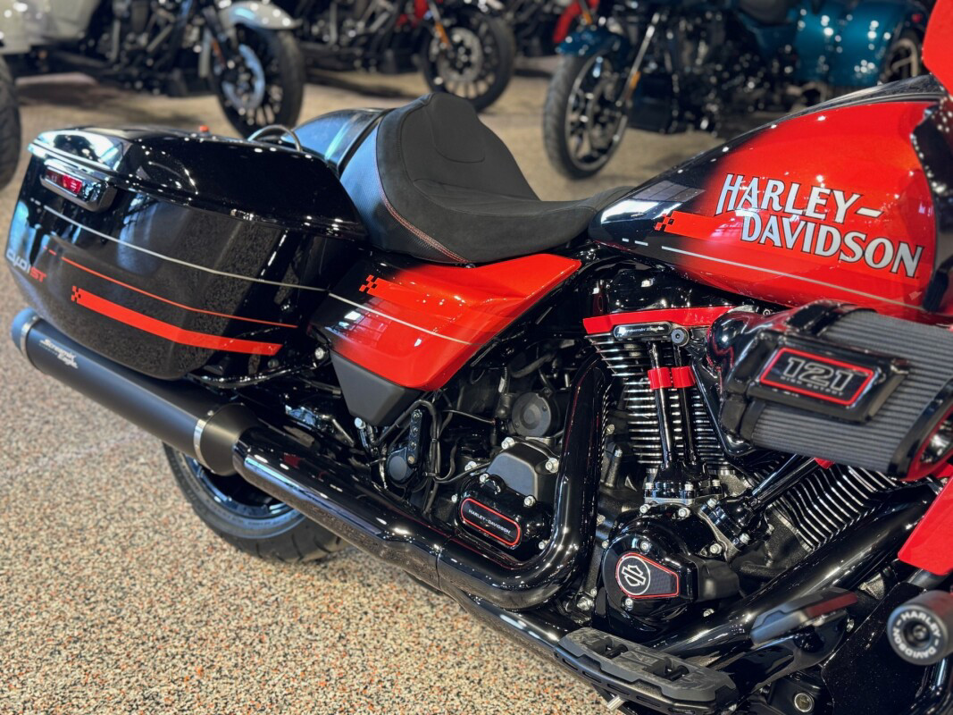 The 2026 CVO Road Glide ST is Harley-Davidson’s race-inspired bagger at its most ruthless. Its Milwaukee-Eight 121 High Output motor delivers unbelievable power and performance, fed by a Heavy Breather intake and finished with titanium-capped mufflers. Forged carbon fibre details, tall risers with a factory moto-bar setup, remote-reservoir suspension, and specialised track modes give it the look and feel of a purpose-built weapon engineered to outpace everything around you.