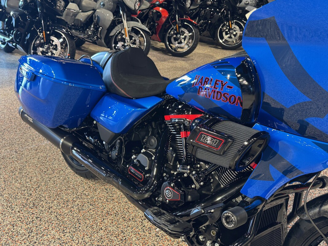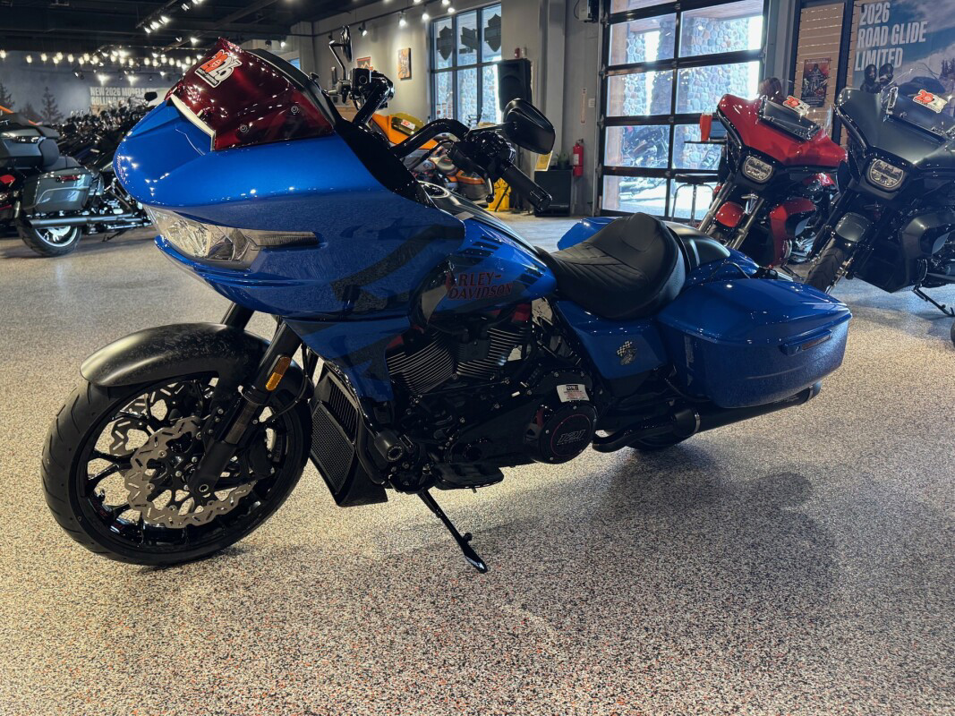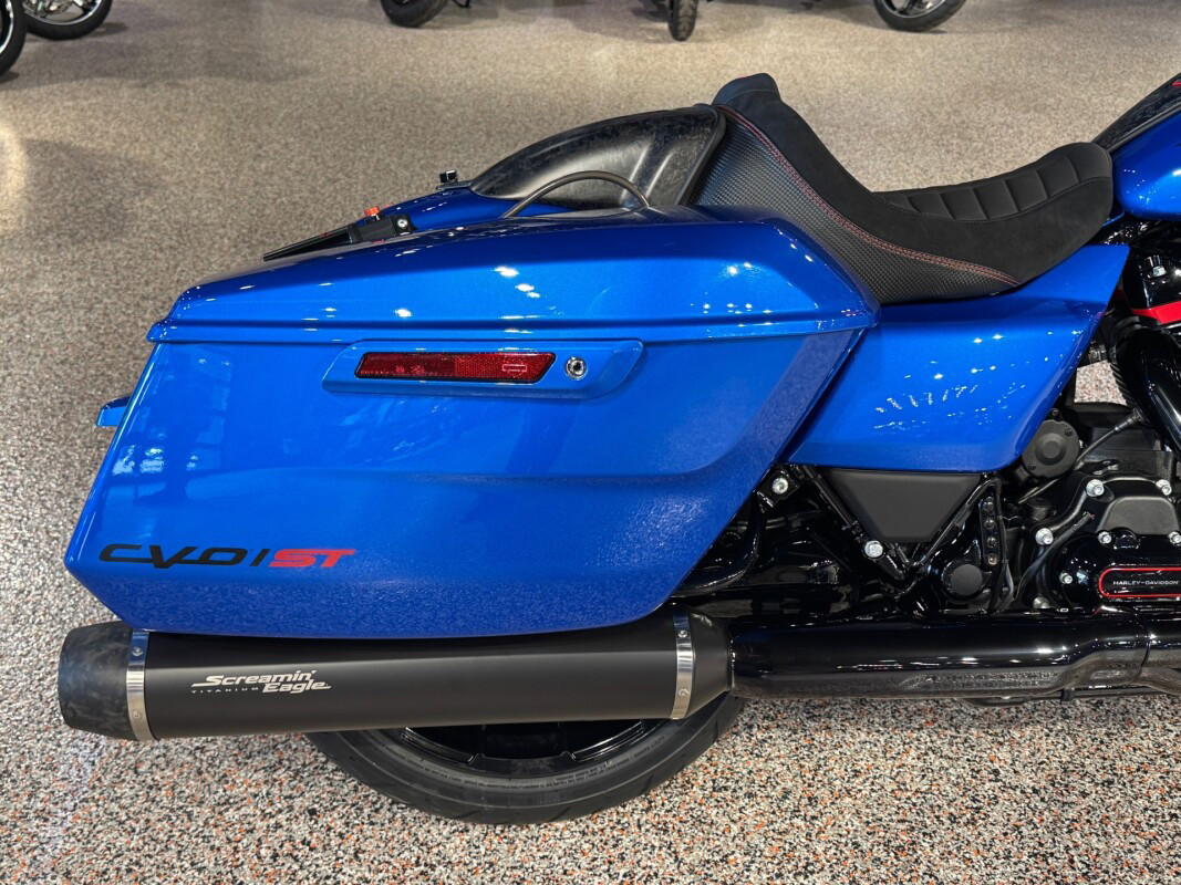 2026 Harley-Davidson CVO Road Glide STBorn for Life in the Fast Lane. The 2026 CVO Road Glide ST is Harley-Davidson’s race-inspired bagger at its most ruthless. Its Milwaukee-Eight 121 High Output motor delivers unbelievable power and performance, fed by a Heavy Breather intake and finished with titanium-capped mufflers. Forged carbon fiber details, tall risers with a factory moto-bar setup, remote-reservoir suspension, and specialized track modes give it the look and feel of a purpose-built weapon engineered to outpace everything around you. Features may include: Forged Carbon DetailsThe front fender, console, and rear seat cowl are crafted from forged carbon fiber — an advanced material that blends strength with weight savings. The result is a finish that looks as fast as it feels, echoing the design language of modern race machines.Race-Ready CockpitA moto-style handlebar with six-inch risers sits taller for a more commanding, race-inspired riding position that makes riders feel snugged up straight from the Factory. Paired with Switchback Collection mini-boards and grips, it forms an aggressive rider triangle built for precision. Gloss Black Seven-Spoke wheels minimize mass for sharper response through every corner.Citrus Heat Re-Entry, Inferno Gray + Electric Coast ColorwaysAvailable in three exclusive colorways — Citrus Heat Re-Entry, Inferno Gray, and Electric Coast — each one amplifies the CVO Road Glide ST’s race-inspired attitude. Citrus Heat Re-Entry, available only on this model, features a bold Screamin’ Eagle graphic across the fairing and tank, while Inferno Gray and Electric Coast showcase Harley-Davidson script and an oversized Bar & Shield. This bike looks every bit as fierce as it sounds.Sharknose Fairing with Red-Tint WindshieldThe signature Sharknose fairing is both functional and fun, delivering exceptional aerodynamic performance and a menacing stance that defines the CVO Road Glide ST. A red-tinted windshield ties into Performance Red accents for a unified, track-inspired look that’ll make you feel like you’re the King of the Baggers. See what we did there?Switchback Collection Billet FloorboardsCompact billet aluminum floorboard from the Switchback Collection cut weight without cutting look and feel. Their anodized black finish and chunky rubber tops offer sure footing and a raw, functional aesthetic made for aggressive riding anywhere you go.