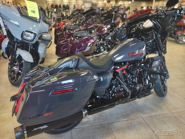 2026 Harley-Davidson® CVO™ Street Glide® STWhere Redline Meets Rowdy.Introducing a new chapter in the CVO story: the 2026 CVO Street Glide ST. All new for 2026, the CVO Street Glide ST takes the Batwing bagger into uncharted territory. Its Heavy Breather intake gives it lungs to match its attitude, while floating front rotors, eight selectable ride modes (including Track and Track+), and remote-reservoir suspension bring race-bred precision to the street. Forged carbon details and the Milwaukee-Eight® 121 High Output motor make it luxury and ruthlessness in a machine that doesn’t know the meaning of the word “quit.”Features may include:Performance Goes PlatinumBuilt for riders who live wide open, the CVO Street Glide ST fuses race-bred hardware with premium finishes that scream precision. From forged carbon fiber details to its Milwaukee-Eight 121 High Output motor and eight selectable ride modes (including race-calibrated Track and Track+), it’s the most aggressive CVO Batwing bagger ever built.NEW Inferno Gray + Electric Coast ColorwaysInferno Gray burns hot and Electric Coast cools things down, and the red-tinted windscreen ties it all together. Both colorways are accented by Screamin' Eagle graphics that move with the light. Nobody does factory paint and graphics like Harley-Davidson, and these new colorways are no exception .: Performance Fused HandlebarWith a wider, taller bar inspired by Harley-Davidson’s popular Fuse setup, the Performance Fused handlebar nails that club-style stance. They’re 1.6 inches wider, two inches taller, and built to make every move feel deliberate and confident.Forged Carbon DetailsF orged carbon accents on the front fender, console, and seat cowl deliver a purposeful, high-end finish that blends strength and weight reduction with beauty . Each piece is lightweight, functional, and meticulously crafted, and a true form-meets-function detail worthy of the CVO badge.Solo Rider FocusThe solo seat and hard-shell rear cowl define this CVO’s performance posture and solidifies the idea that this bike was built for one rider and one purpose: Go. Sculpted for support during aggressive riding and comfort everywhere else, the seat’s raised bolster, premium construction materials, and Performance Red detailing set this saddle apart from anything you’ve ever sat on.Refined Performance LightingLED lighting illuminates the road with precision clarity and aggressive character. It’s a look that commands attention at every angle, because this CVO was never meant to blend into the dark.