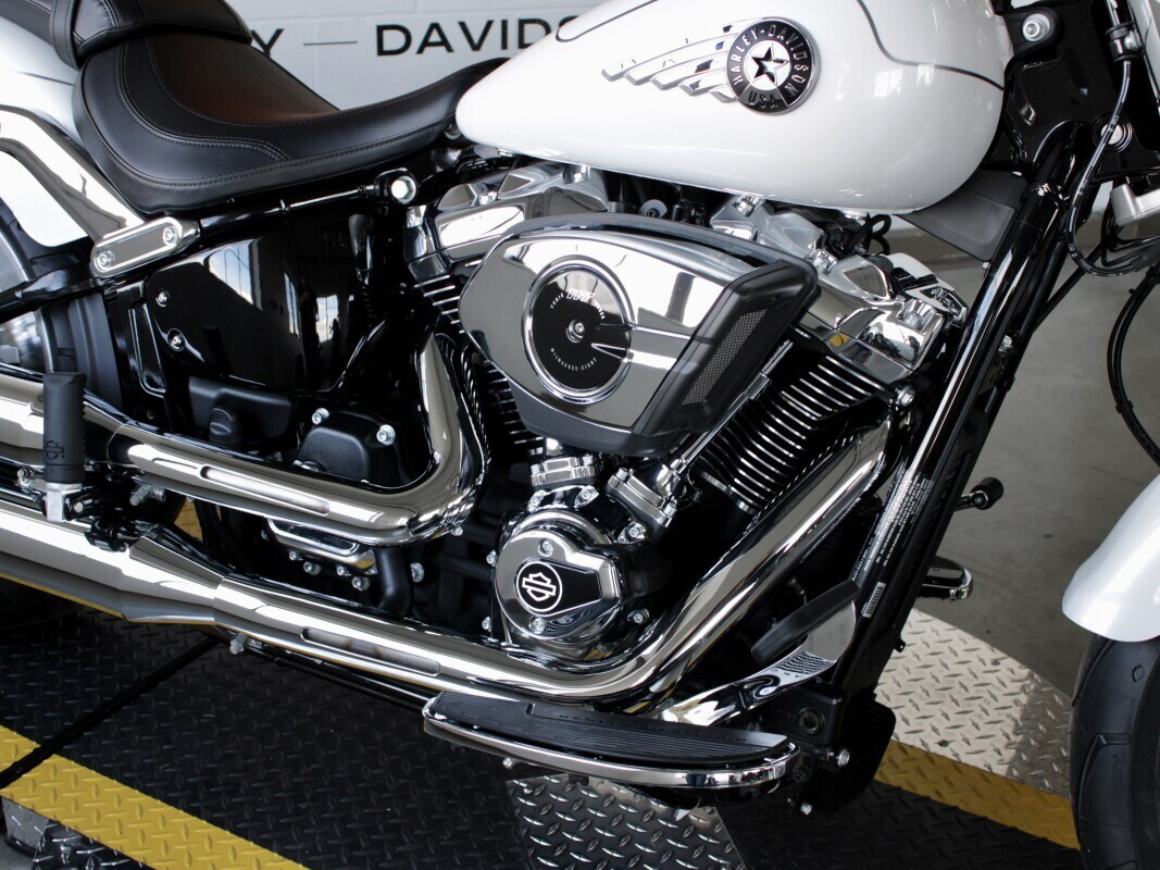 The upgraded 117 engine delivers strong roll-on power and deep low-end torque, giving the Fat Boy its signature “steamroller” feel on the road.