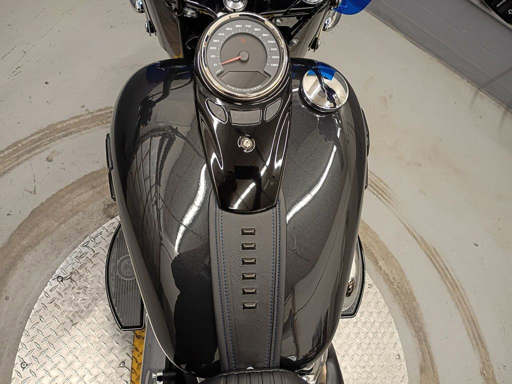 Deep paint, blacked-out trim, and the iconic tank medallion give the Heritage Classic its unmistakable silhouette. Add in plush 2-up seating, and you’ve got a factory custom that carries the weight of history and still feels built for today’s ride.