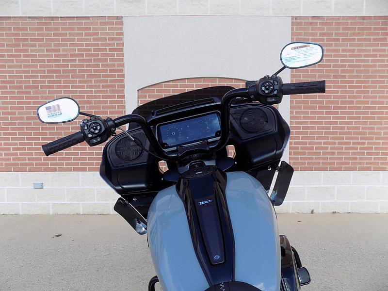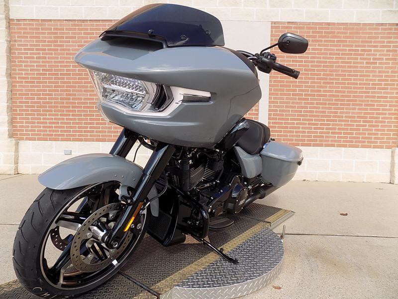 From an external viewpoint, the Road Glide Touring stands out with its striking 'Dark Billiard Gray' exterior color, a shade that enhances its bold and sleek profile. This distinctive color imparts a sense of modernity and timelessness, appealing to both seasoned riders and new enthusiasts alike. The robust frame is characterized by its aggressive and streamlined silhouette, optimized for both aerodynamics and rider comfort.