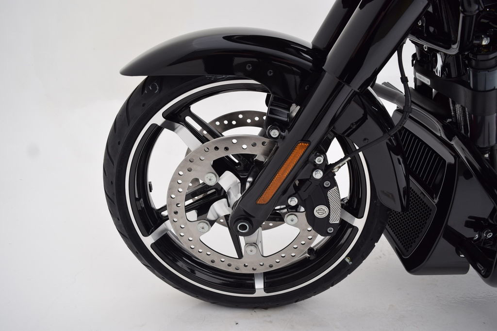 With an 18" rear (457 mm) and 19" front (483 mm), these lightweight cast-aluminum wheels come in a distinctive gloss black finish with machined highlights and are purpose-built to make the 2026 Road Glide more maneuverable than ever