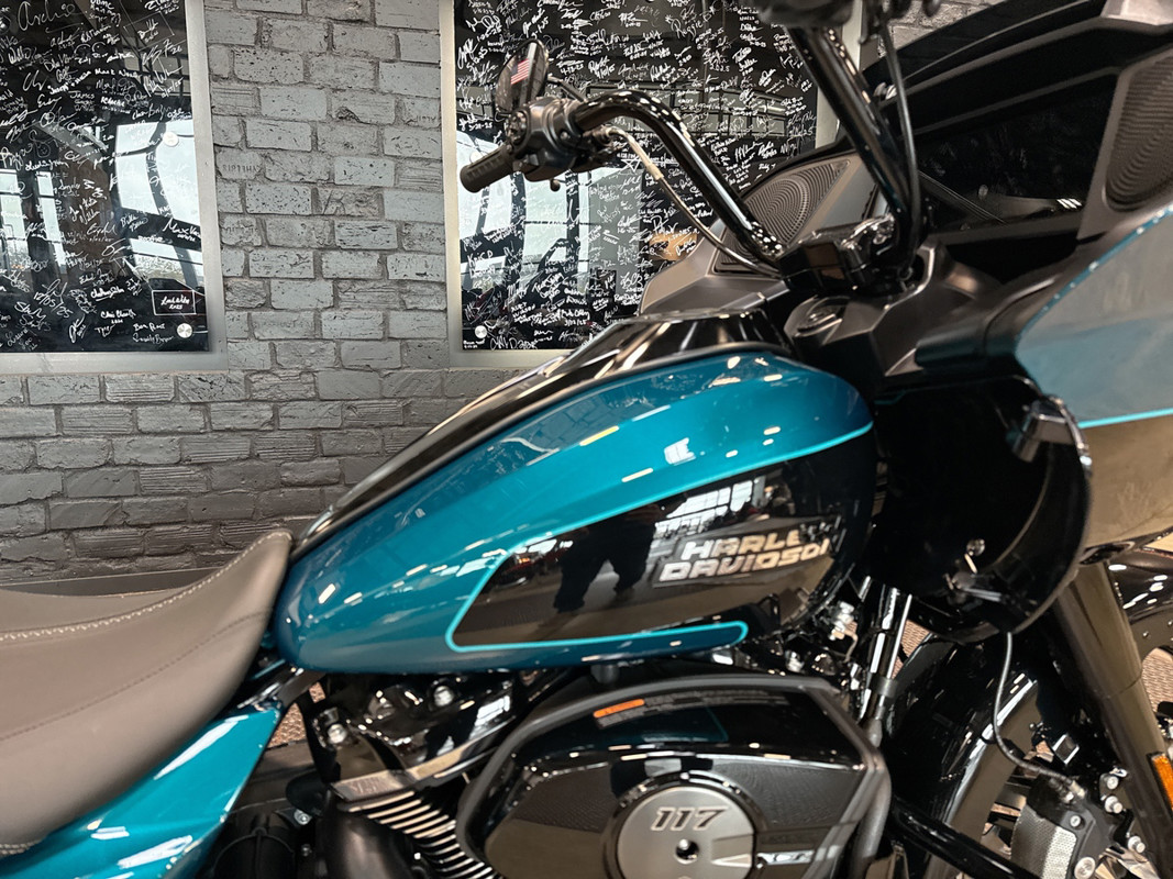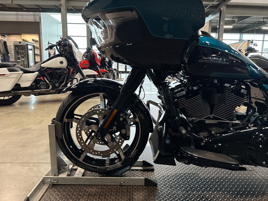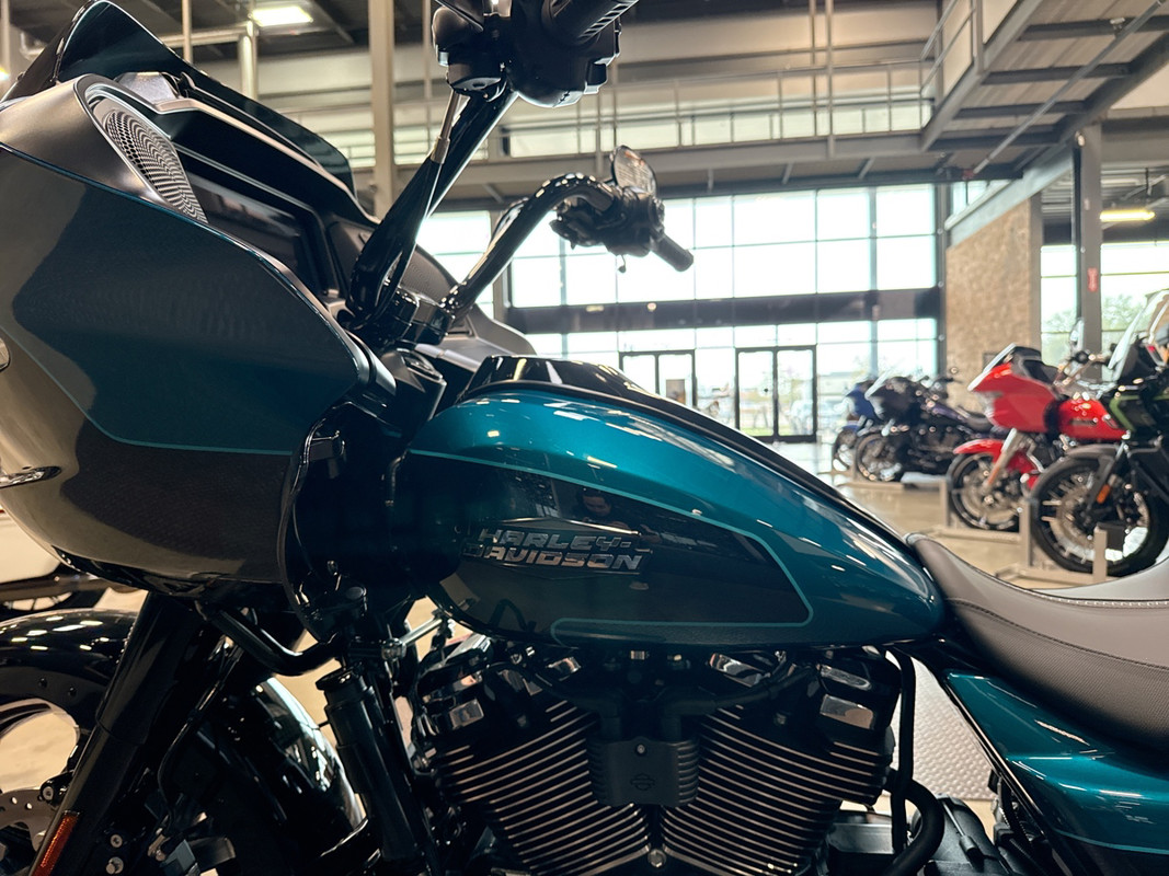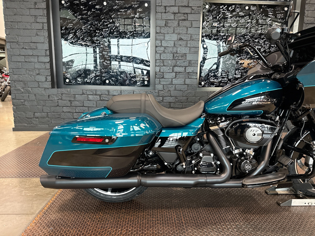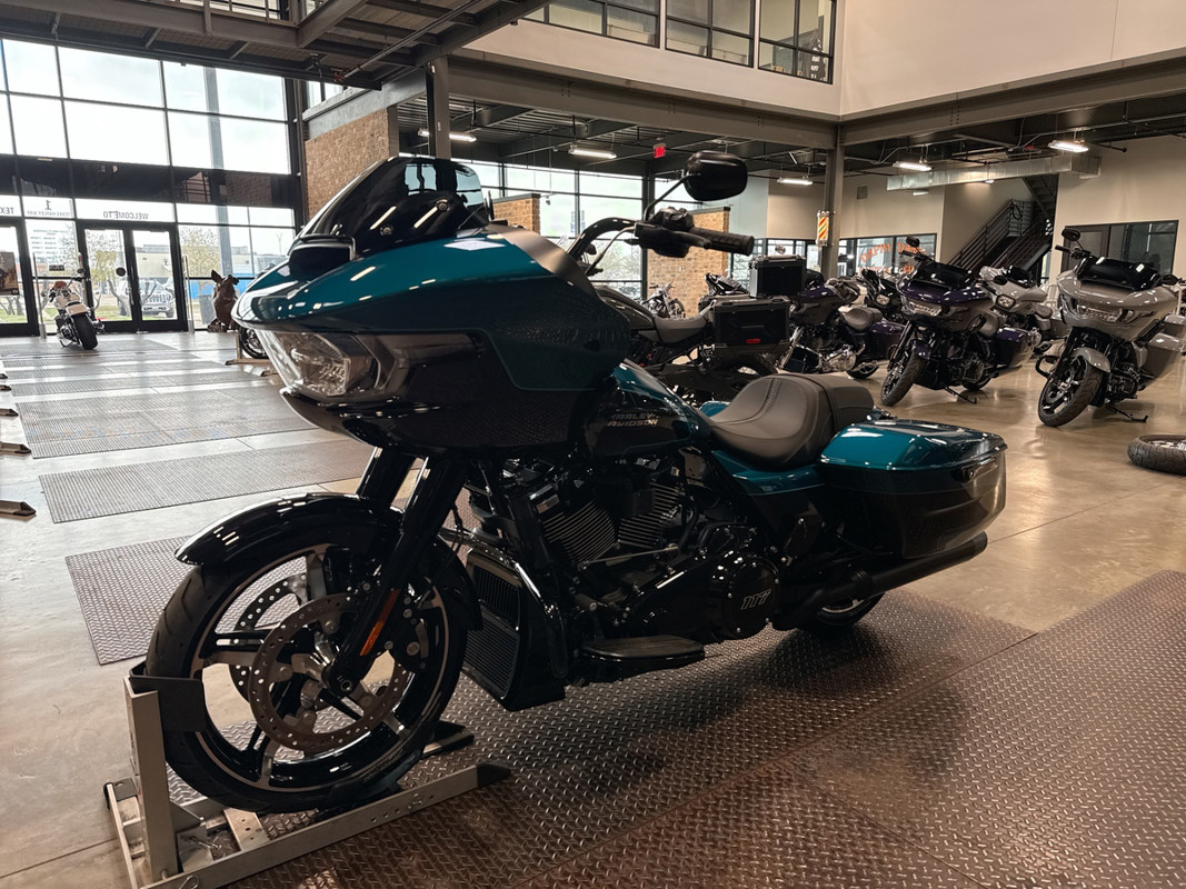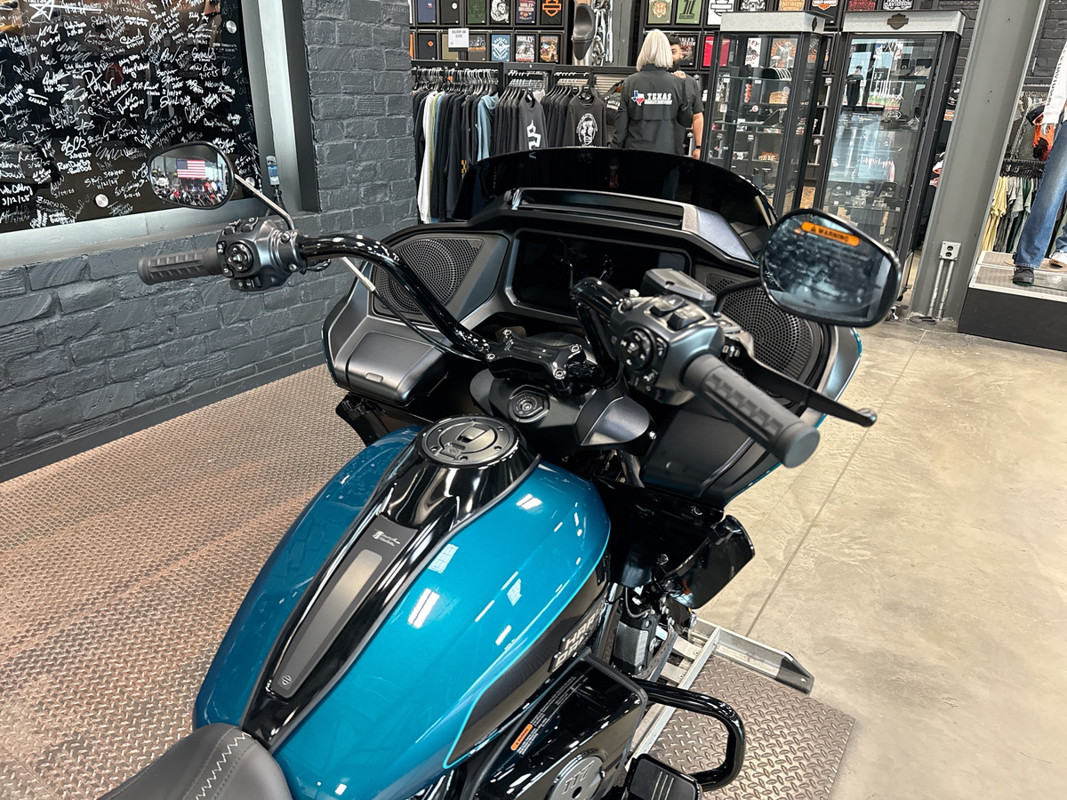 Finished in a striking Teal Thunder and Black with pinstriping, this Road Glide makes a statement even before it roars to life. Its dynamic appearance and premium detailing ensure that you’ll turn heads wherever you ride.