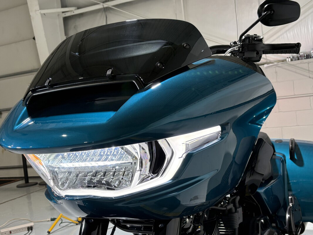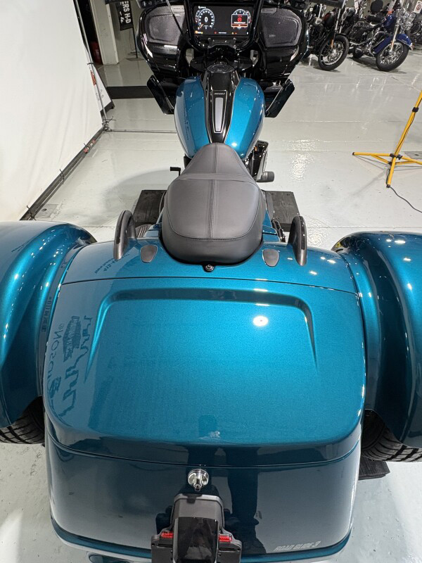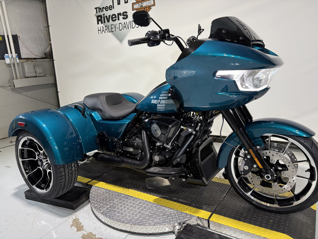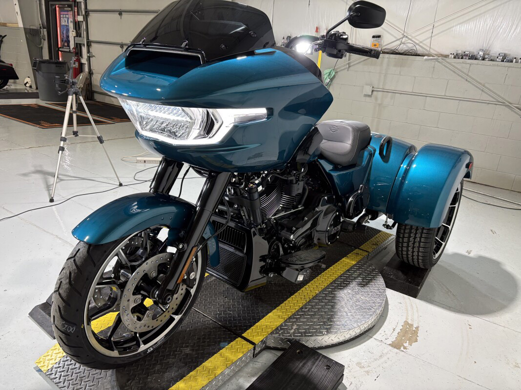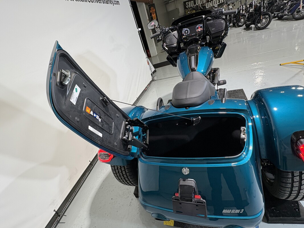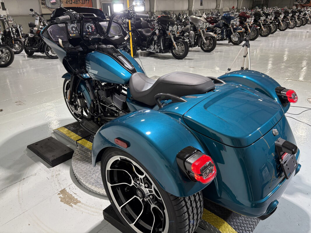 The new 2026 Harley-Davidson Road Glide 3 rewrites what a trike can be. It's leaner, it's meaner, and it's built for all get out. A redesigned Sharknose fairing cuts a sharper profile over a planted, aggressive stance. A Milwaukee-Eight VVT 117 motor is at the center of its hot-rod heart, and its brand new, completely redesigned rear suspension does two things: grip and go. The 12.3 TFT with Skyline OS, along with LED lighting, Rider Safety Enhancements, and four selectable ride modes keep this one ready for street and strip.