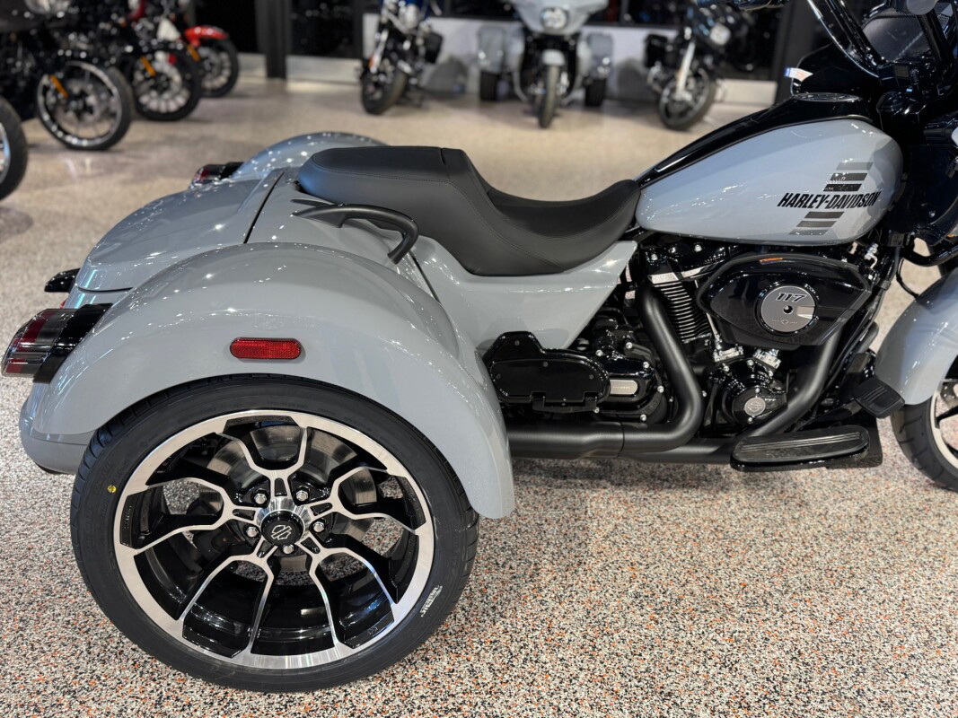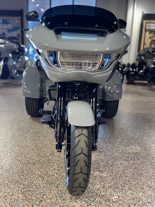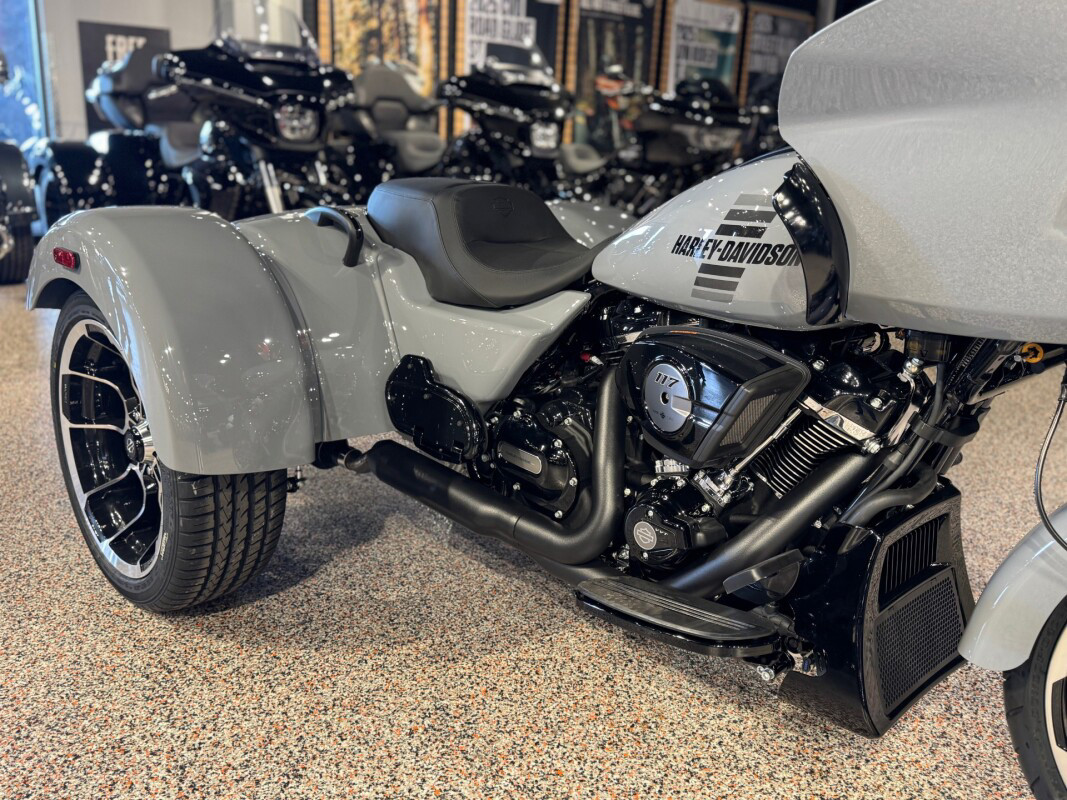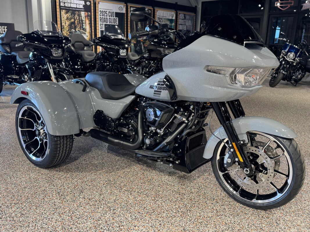 The new 2026 Harley-Davidson Road Glide 3 rewrites what a trike can be. It's leaner, it's meaner, and it's built for all get out. A redesigned Sharknose fairing cuts a sharper profile over a planted, aggressive stance. A Milwaukee-Eight VVT 117 motor is at the centre of its hot-rod heart, and its brand new, completely redesigned rear suspension does two things: grip and go. The 12.3 TFT with Skyline OS, along with LED lighting, Rider Safety Enhancements, and four selectable ride modes keep this one ready for street and strip.