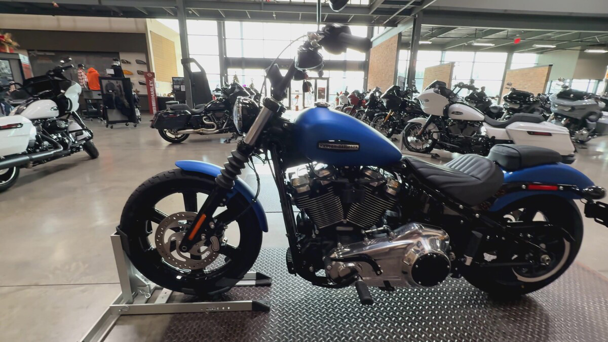 Experience the thrill of the open road with the 2026 Harley-Davidson Street Bob in stunning Aurora Blue Denim. This new Softail model encapsulates the essence of Harley-Davidson with its bold design and exhilarating performance, ready to deliver the ultimate freedom and adventure to its riders.