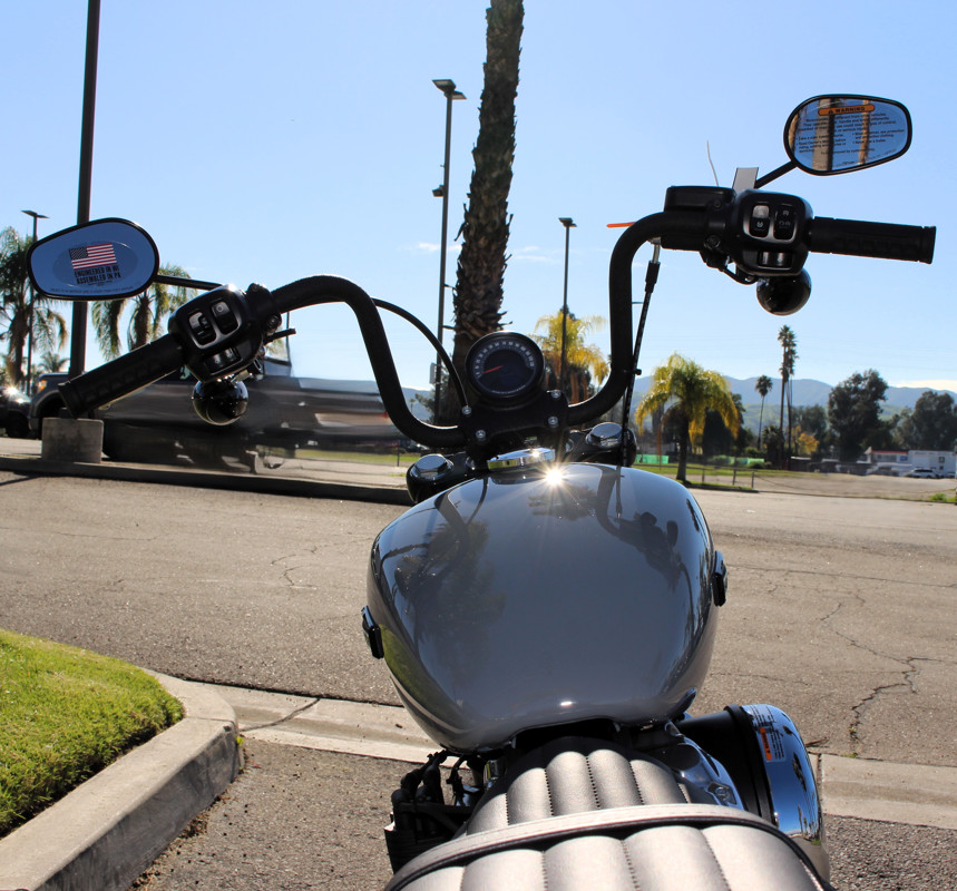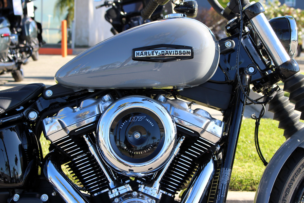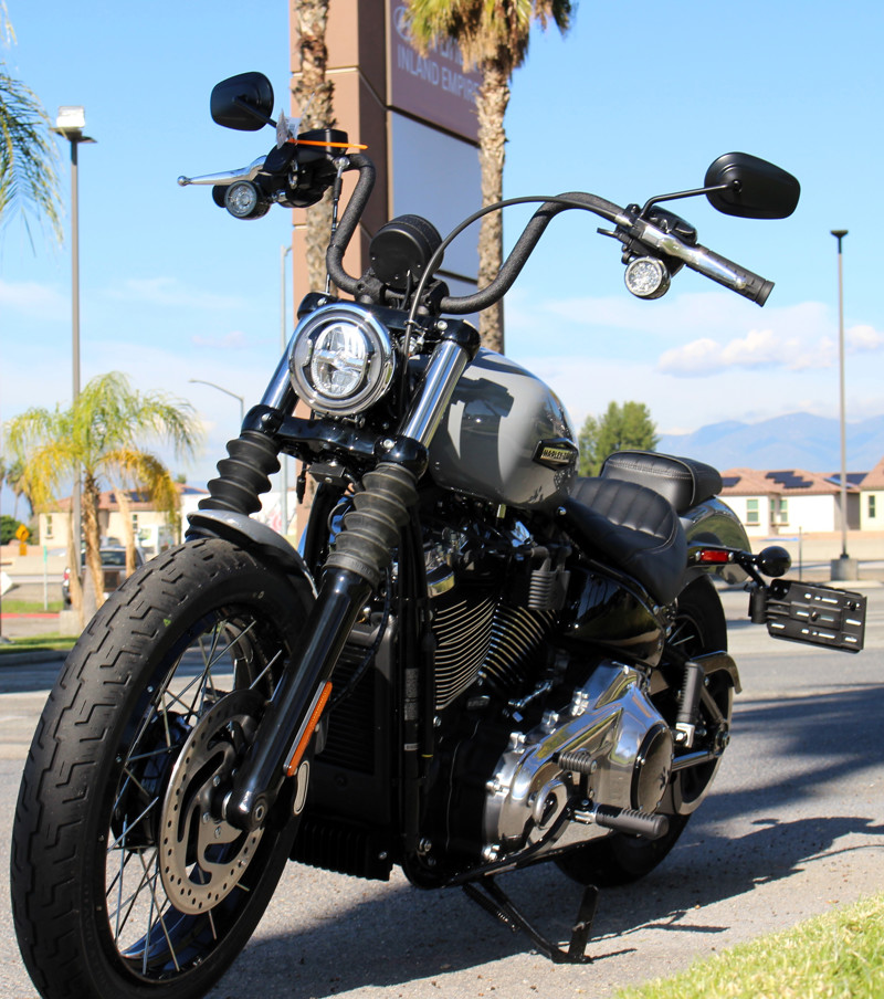 Milwaukee-Eight® power, Softail frame, mini-ape bars, mid controls, and classic stripped-down bobber style.