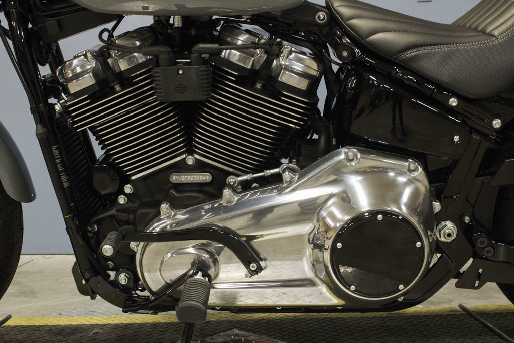 With mini ape-hanger bars, a slim 3.5-gallon (13.2 l) gas tank, and a short, bobbed rear fender, the Street Bob has custom bobber style straight from the factory with none of the custom bobber struggle.