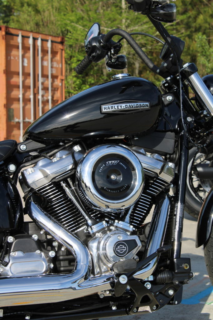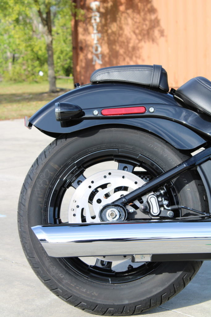 With mini ape-hanger bars, a slim 3.5-gallon (13.2 l) gas tank, and a short, bobbed rear fender, the Street Bob has custom bobber style straight from the factory with none of the custom bobber struggle.
