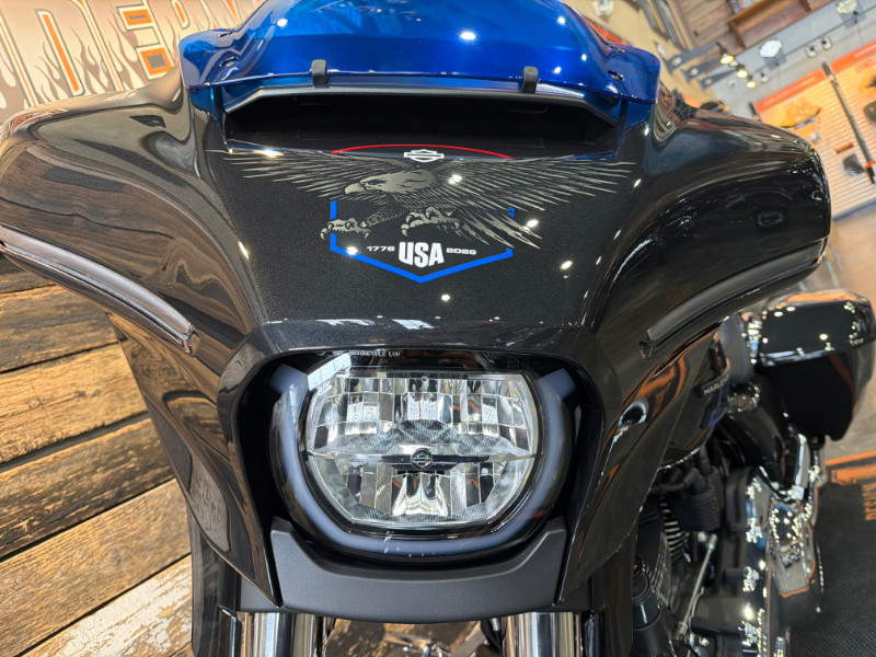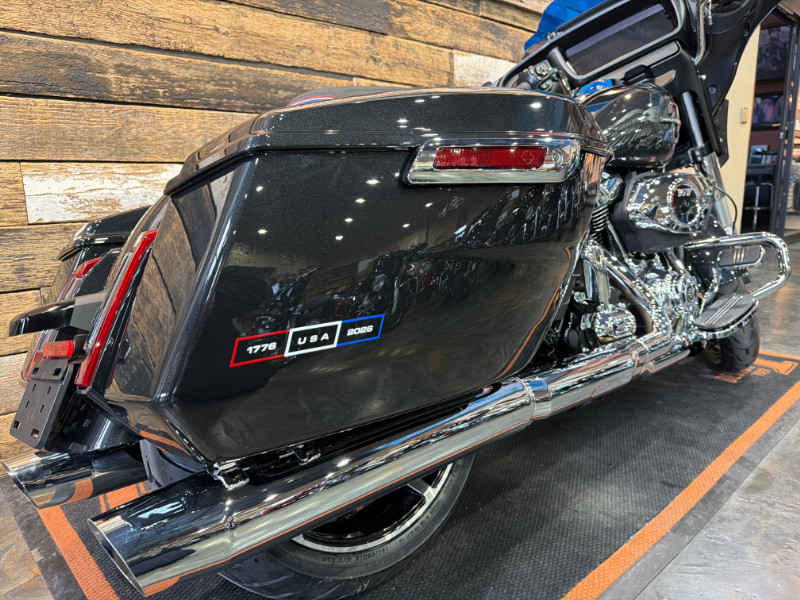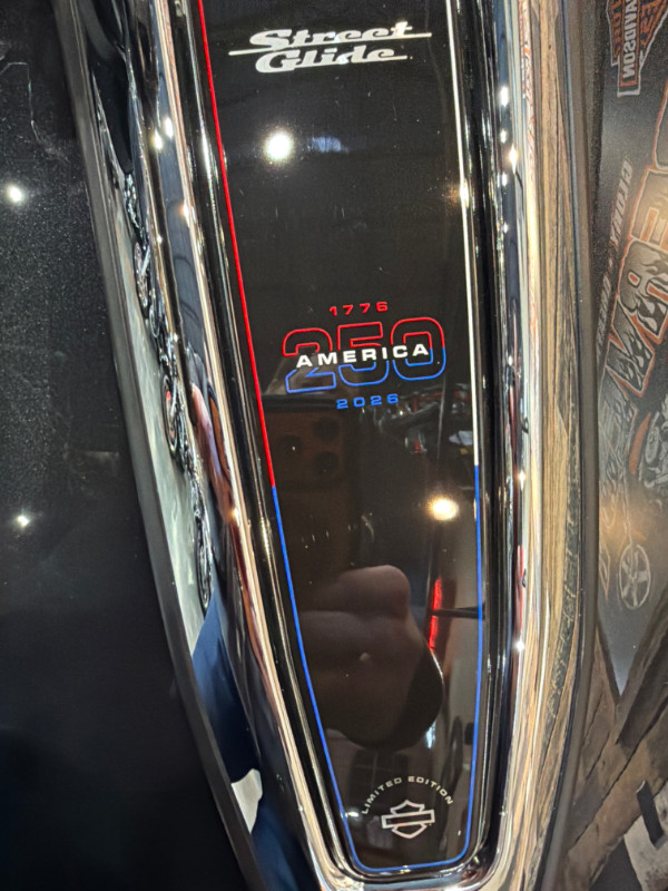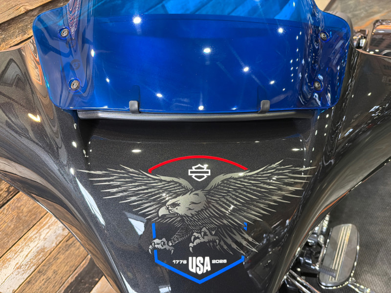 The 2026 Street Glide Liberty Edition carries a story that runs deeper than paint. Midnight Ember sets the tone, but it’s the eagle graphics, drawn from Harley-Davidson’s iconic Bicentennial and Liberty Editions, that root it in history. A blue-tinted windshield, red-white-and-blue seat stitching, and exclusive Liberty badging make this bike instantly recognizable. It’s a rolling salute to 250 years of freedom and the riders who keep that spirit alive.