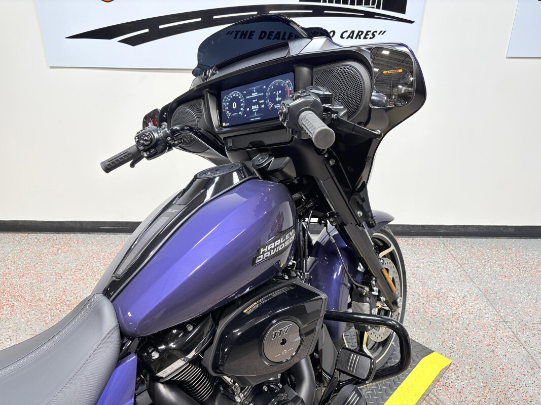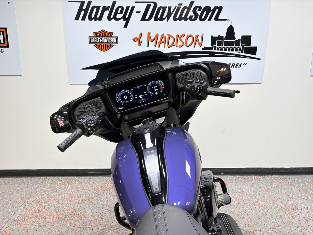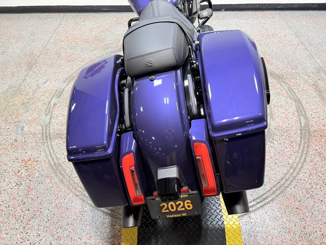 The 2026 Harley-Davidson Street Glide is a classic touring motorcycle that blends iconic bagger styling with modern performance and advanced technology for riders who live to roam. Powered by a liquid-cooled Milwaukee-Eight 117 V-Twin engine delivering approximately 105 hp and 130 ft-lb of torque, the Street Glide brings muscular performance and smooth throttle response to every highway mile. Its redesigned aerodynamic Batwing fairing is shaped to reduce wind buffeting and enhance rider comfort, while contrast-cut, cast-aluminum wheels and bold new colorways turn heads at every stop. A connected Skyline OS 12.3-inch TFT touchscreen display with selectable ride modes, Apple CarPlay compatibility, and premium audio keeps navigation and media at your fingertips. With full LED signature lighting, ride-tuned suspension optimized for long haul comfort, and classic touring presence, the 2026 Street Glide delivers timeless style, cutting-edge tech, and open-road capability.