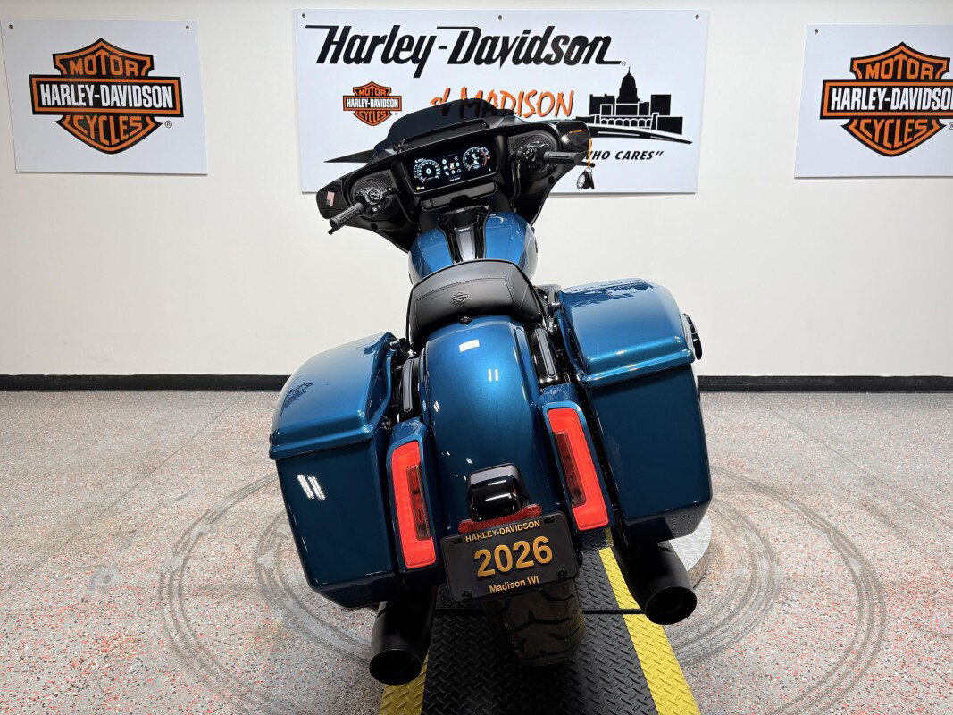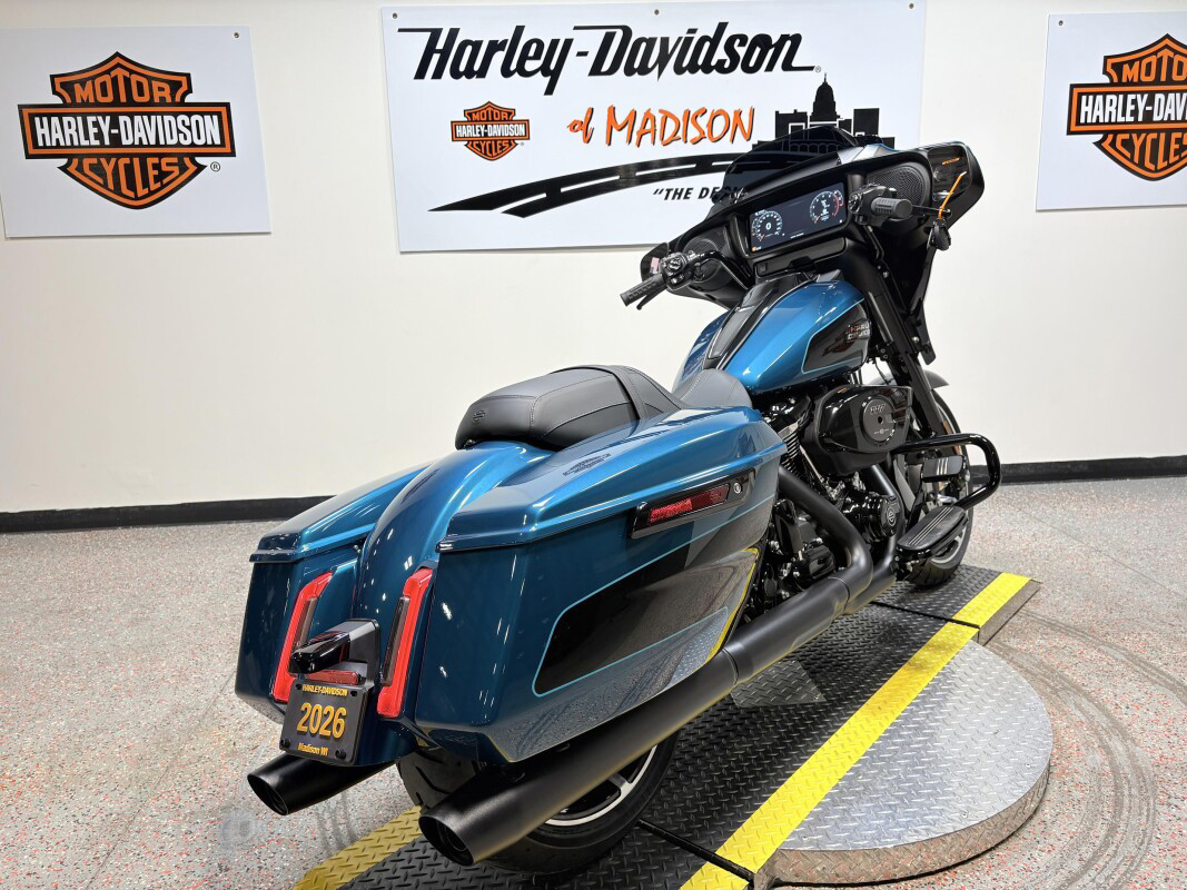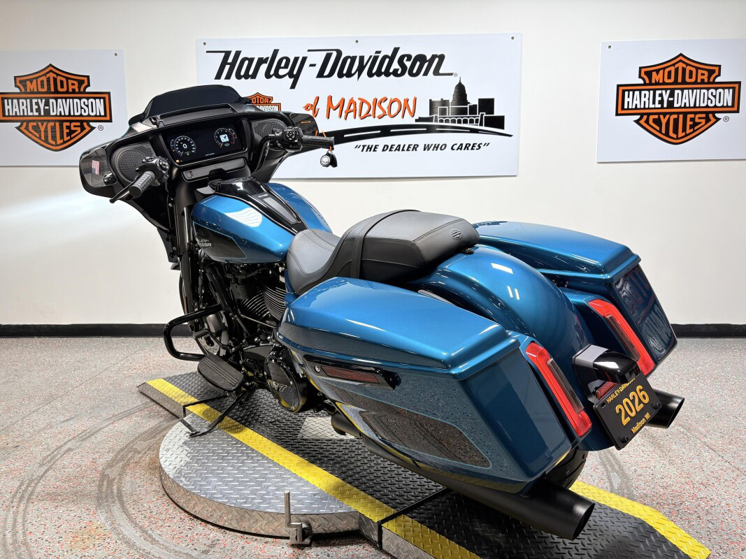 The 2026 Harley-Davidson Street Glide is a classic touring motorcycle that blends iconic bagger styling with modern performance and advanced technology for riders who live to roam. Powered by a liquid-cooled Milwaukee-Eight 117 V-Twin engine delivering approximately 105 hp and 130 ft-lb of torque, the Street Glide brings muscular performance and smooth throttle response to every highway mile. Its redesigned aerodynamic Batwing fairing is shaped to reduce wind buffeting and enhance rider comfort, while contrast-cut, cast-aluminum wheels and bold new colorways turn heads at every stop. A connected Skyline OS 12.3-inch TFT touchscreen display with selectable ride modes, Apple CarPlay compatibility, and premium audio keeps navigation and media at your fingertips. With full LED signature lighting, ride-tuned suspension optimized for long haul comfort, and classic touring presence, the 2026 Street Glide delivers timeless style, cutting-edge tech, and open-road capability.