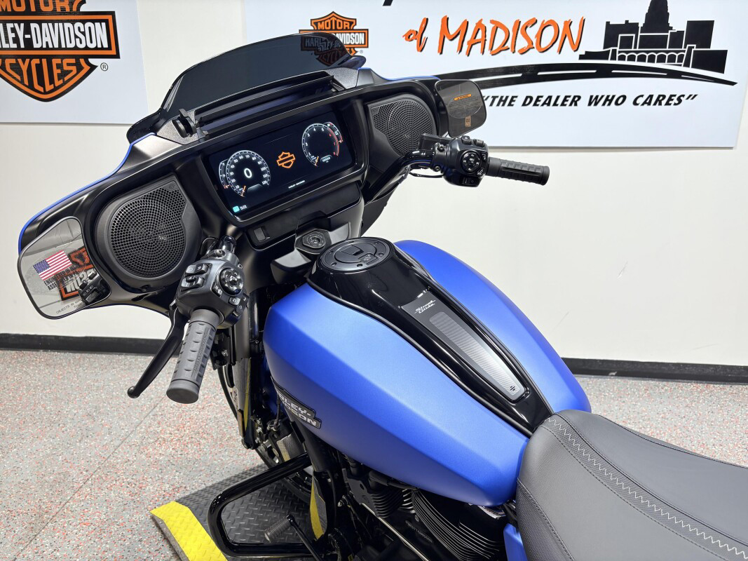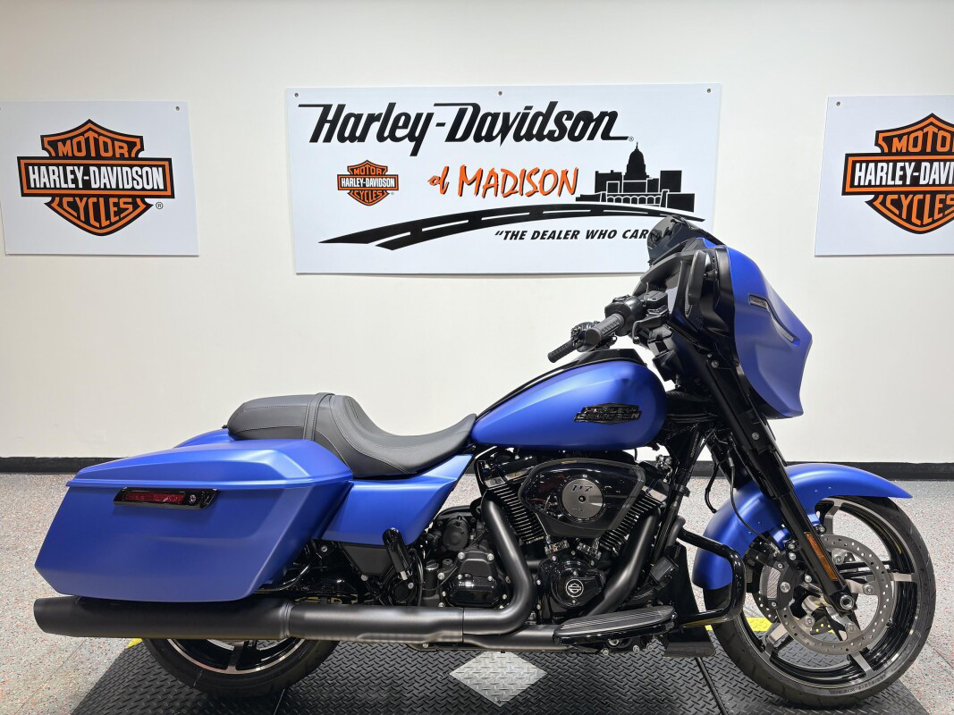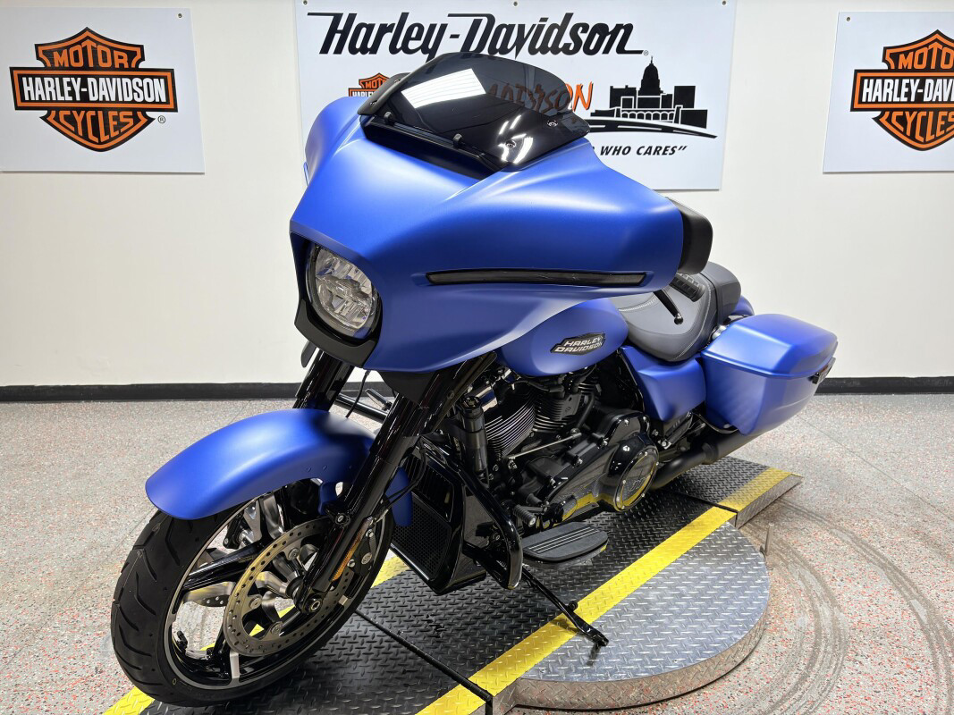 The 2026 Harley-Davidson Street Glide is a classic touring motorcycle that blends iconic bagger styling with modern performance and advanced technology for riders who live to roam. Powered by a liquid-cooled Milwaukee-Eight 117 V-Twin engine delivering approximately 105 hp and 130 ft-lb of torque, the Street Glide brings muscular performance and smooth throttle response to every highway mile. Its redesigned aerodynamic Batwing fairing is shaped to reduce wind buffeting and enhance rider comfort, while contrast-cut, cast-aluminum wheels and bold new colorways turn heads at every stop. A connected Skyline OS 12.3-inch TFT touchscreen display with selectable ride modes, Apple CarPlay compatibility, and premium audio keeps navigation and media at your fingertips. With full LED signature lighting, ride-tuned suspension optimized for long haul comfort, and classic touring presence, the 2026 Street Glide delivers timeless style, cutting-edge tech, and open-road capability.