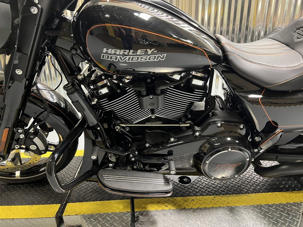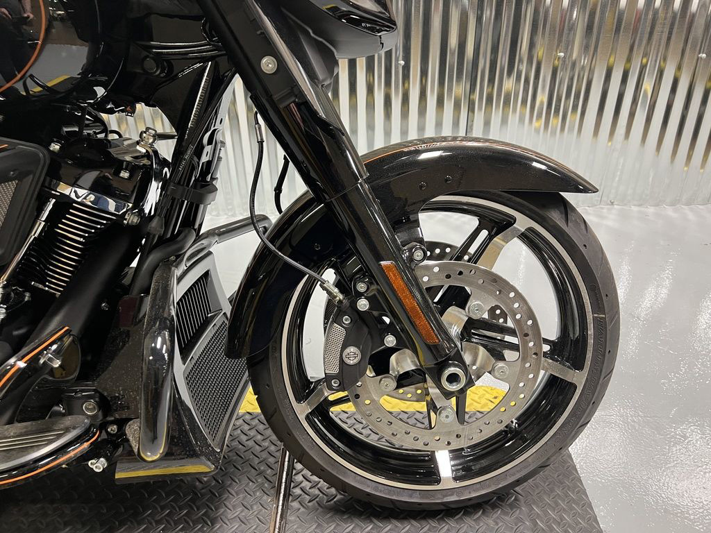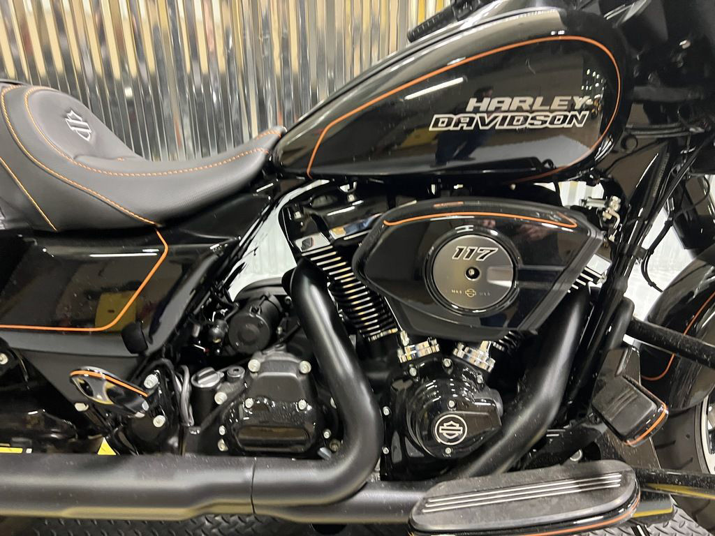 The Milwaukee-Eight 117 delivers 105 hp and 130 ft-lb. of torque, with liquid-cooled heads and a center-mounted radiator to keep both performance and rider comfortable when the temps climb, whether you’re crawling through traffic or chasing sky.