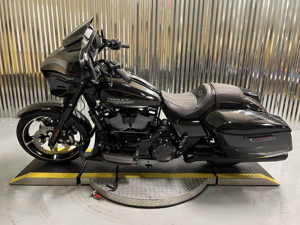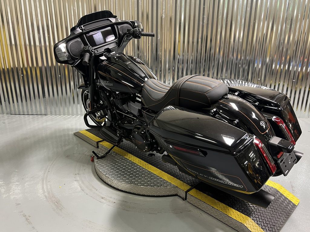 Daytime Running Light headlamp, integrated turn signals, and a slim LED taillight give the Street Glide a modern glow that stands out in traffic and engineered to fit the bike’s clean lines.