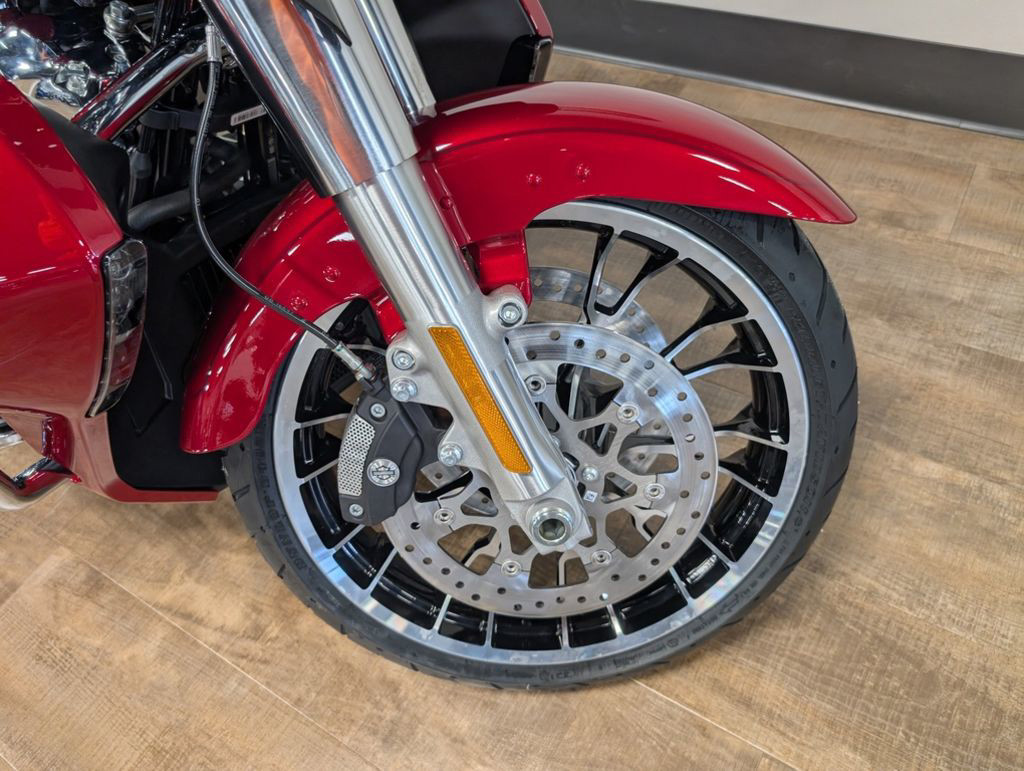 The new cast-aluminum wheels feature a bold 10-spoke design that splits into 20 at the rim, adding a fresh layer of modern style to the Street Glide Limited silhouette. They’re part of an overall 24-pound (10 kg) weight reduction achieved through chassis and component updates, making the ride lighter and sharper without losing its unmistakable Harley-Davidson flavor.