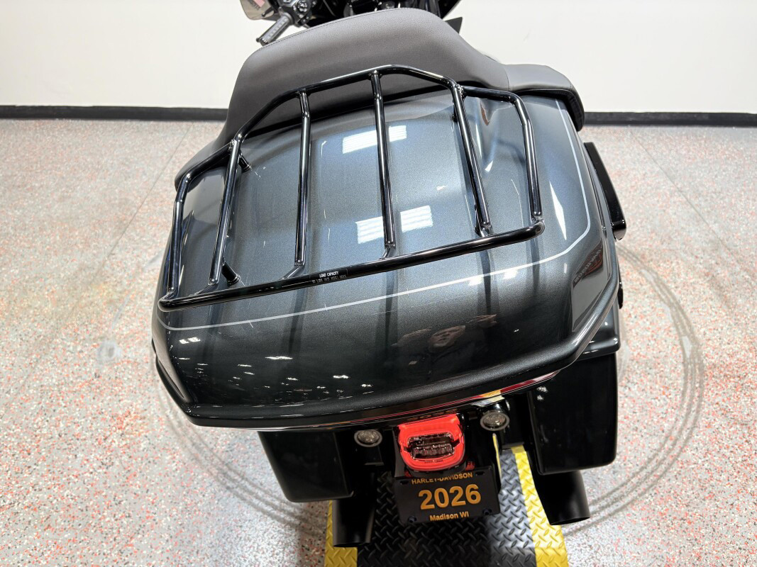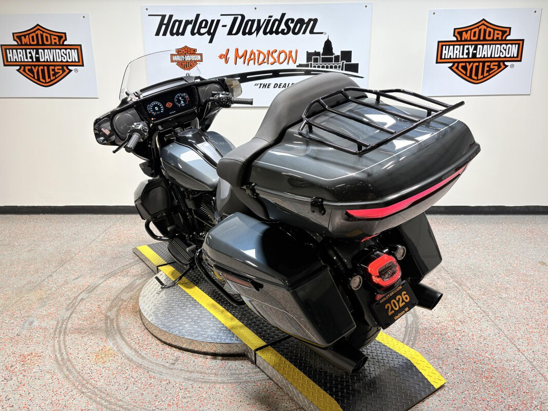 The 2026 Harley-Davidson Street Glide Limited is a premium Grand American touring motorcycle designed for riders who want elevated comfort, long-haul capability, and advanced technology in one legendary package. Powered by a refined Milwaukee-Eight VVT 117 V-Twin engine with about 106 hp and 131 ft-lb of torque, this Street Glide Limited delivers smooth, torque-rich performance for highway cruising and spirited open-road riding. Featuring an all-new Grand Tour-Pak with integrated LED lighting and speaker pods, heated rider and passenger seats with heated grips, and premium Rockford Fosgate audio, it’s built for long days in the saddle with effortless connectivity and comfort. The advanced Skyline OS infotainment system with navigation and Bluetooth keeps you connected and entertained, while tuned aerodynamics and LED lighting enhance stability and presence. With luxurious touring features and classic Street Glide character, the 2026 Street Glide Limited combines performance, technology, and touring comfort.