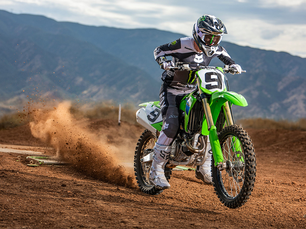 The KX™ legacy represents a long line of champions. The drive to produce more has not slowed down. Our flagship KX™450 motorcycle offers next-level engineering and power to dominate the track. Over the decades, we've learned what it takes to win and stay on top. The KX450 embodies this legacy to the fullest.