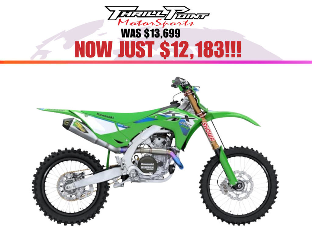 With agile handling, a strong and lightweight chassis, and ERGO-FIT® adjustable components, you’ll experience an unmatched race-winning advantage on the KX™450SR motorcycle. Stand out from the crowd with factory-edition styling, featuring Monster Energy® Kawasaki race team-inspired graphics, Lime Green handlebar pad, Metallic Magnesium Gold cylinder head cover, and a Hinson clutch cover.