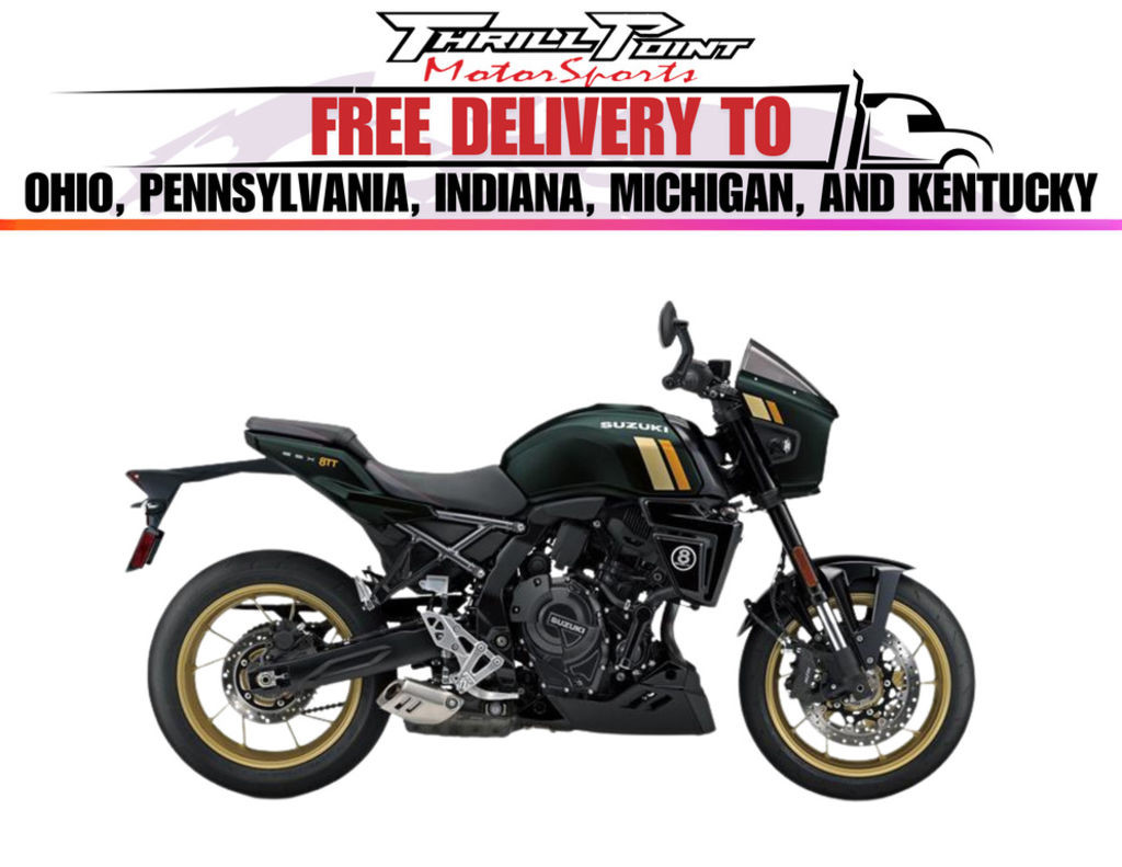 The GSX-8TT utilizes Suzuki’s latest-generation 776cc parallel twin engine, known for its strong torque delivery and proven performance in the GSX-8S and GSX-8R. Paired with electronic rider aids such as Bi-directional Quick Shift system and traction control*, it offers modern technology in a rider-focused package that truly embodies the concept of “Retro Spirit, Next Generation Performance.”