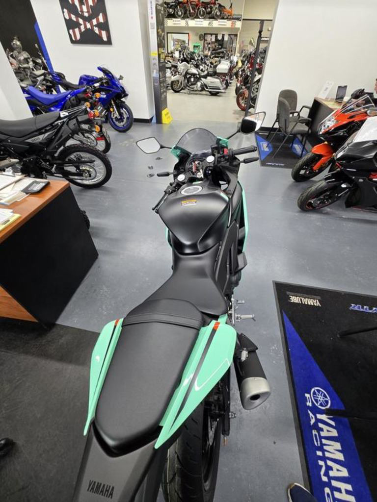 Inspired by the flowing aerodynamics of Yamaha's YZR-M1 MotoGP® race bike, the 2026 YZF-R3's distinctive R-Series pedigree is recognizable at a glance with its aggressive front fairing, sleek side panels and a sporty tail section with signature R-series tail wing.